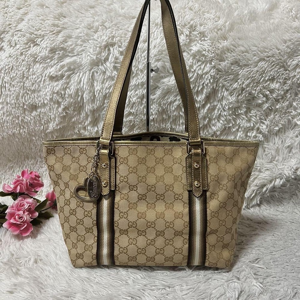 Gucci Tote Bag Gg Canvas Sherry Line Heart Key Charm