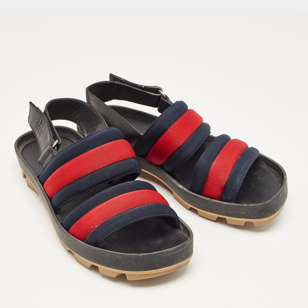 Gucci Tricolor Leather Canvas Rimini Slingback Sandals Size 40.5