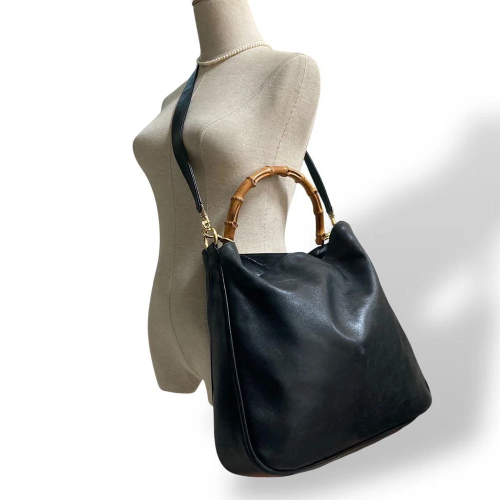 1. This vintage Gucci tote is a stunning blend of luxury and practicality. The black leather is rich and durable, while the iconic bamboo detailing adds a unique, elegant touch. Perfect for both casual and formal outings, it's spacious enough for daily essentials yet stylish enough to elevate any outfit. The two-way carry options make it super versatile, and the craftsmanship ensures it’ll last for years. A true timeless piece that never goes out of style!