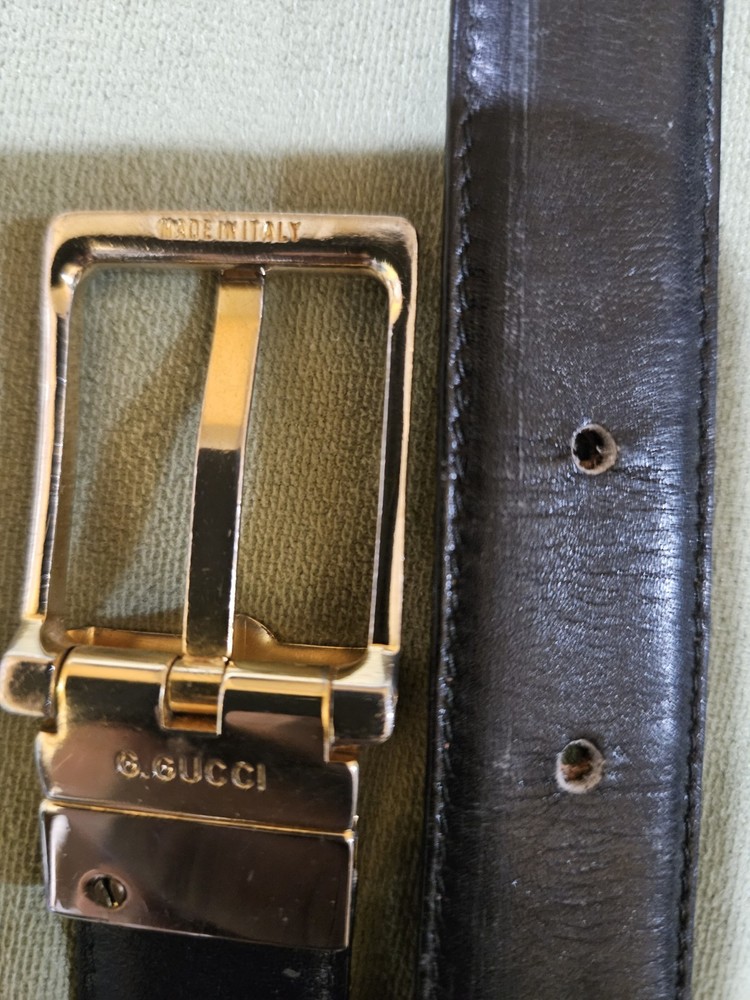 This Gucci vintage belt is a rare find, measuring 38 inches in length and made of black leather from Italy. The classic solid design features a buckle accent, adding a touch of sophistication to any outfit. With its timeless appeal and high-quality craftsmanship, this belt is a stylish accessory for any fashion-forward woman looking to elevate her wardrobe with a touch of luxury.