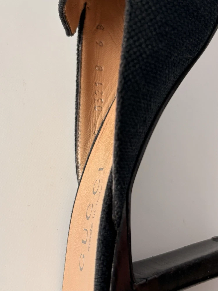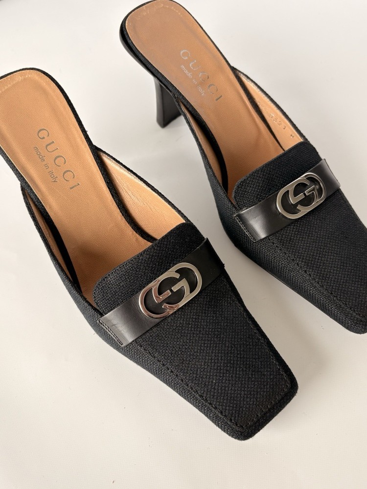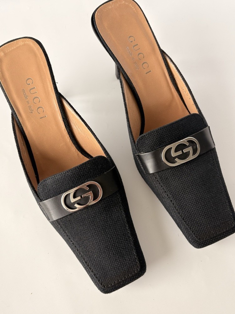 Gucci womens mules. Size 6B EU 37. Textile and leather. Heel height 8 cm / 3,15 in. Made in Italy. Condition: very good. Open to your offers Check description and photos very attentively Add your phone number to the shipping info Worldwide delivery 7-25 days. No retuns. If your need any other information about postcage, measurements, photos etc. please contact me. I will be glad to help You!