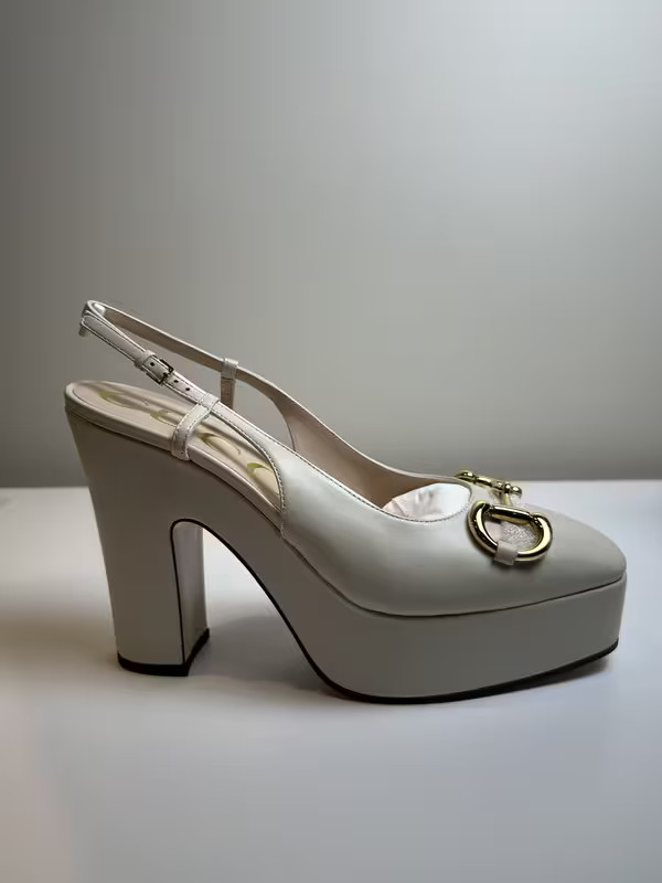 Authentic Gucci White Leather Horsebit Heel New with box and dustbags Size: EU 39.5 Made in Italy