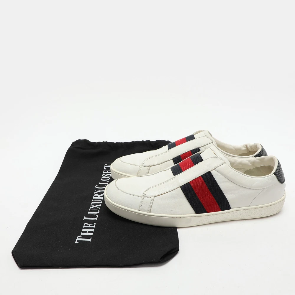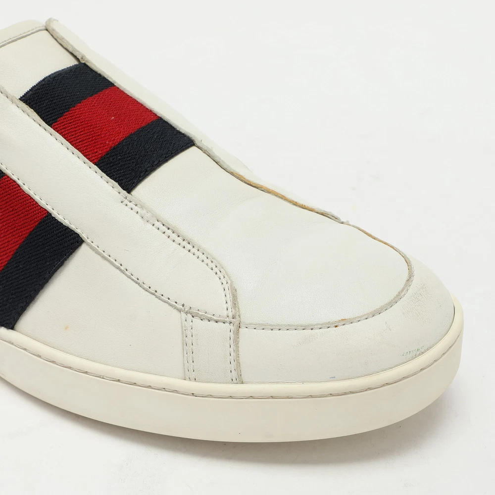 Gucci White Leather Web Slip-On Sneakers EU 43