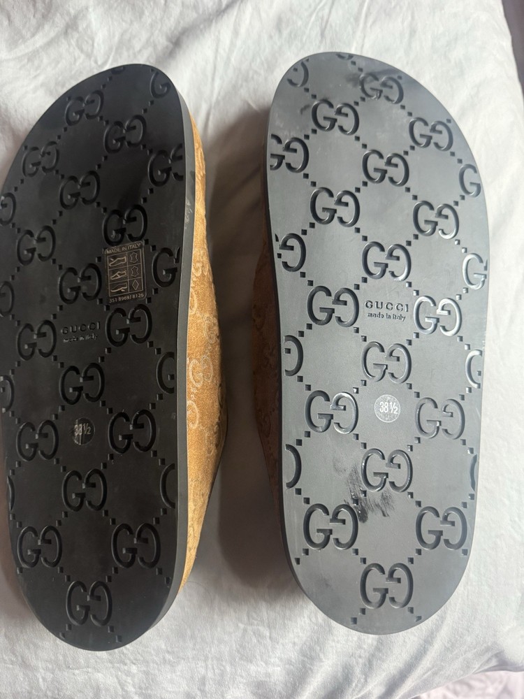 Gucci Women's Brown GG Monogram Horsebit Suede Flats Mule EU 38.5