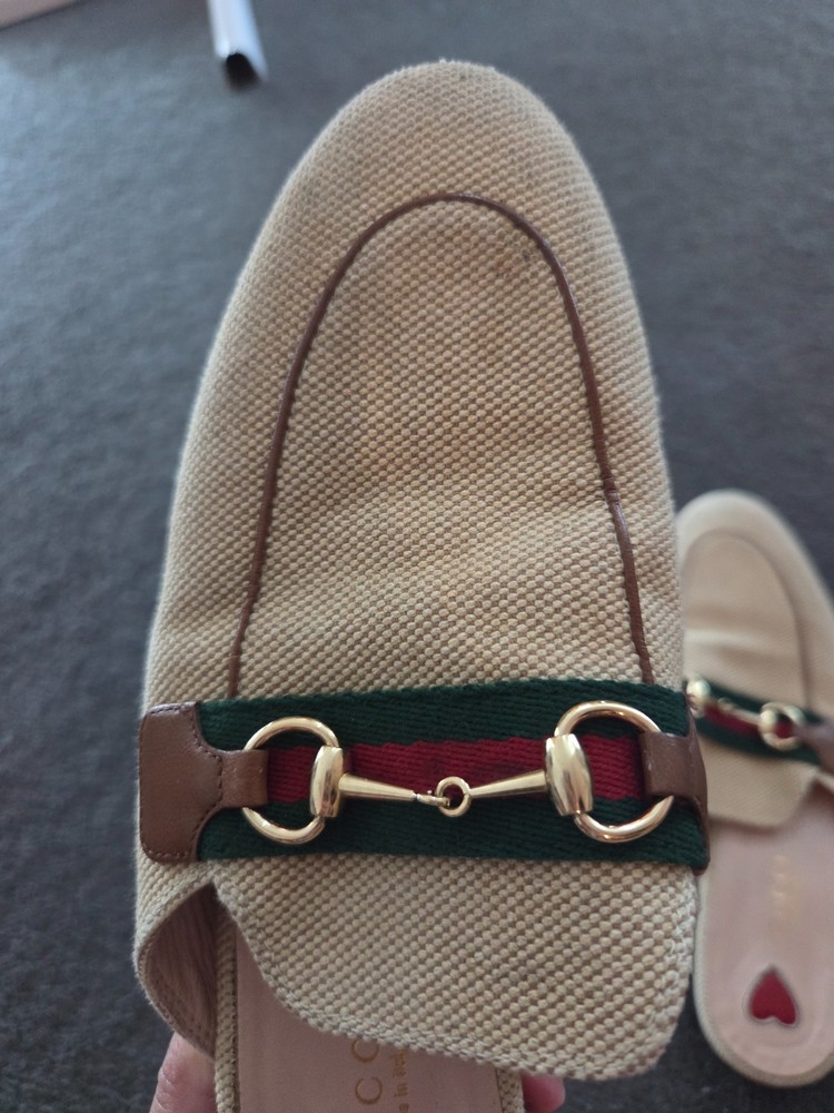 GUCCI BEIGE CANVAS SLIP-ON SHOES MADE IN ITALY SIZE 38