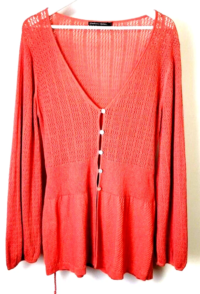 GUDRUN SJODEN Cardigan Linen cotton blend button up knit jumper with beltwomen's SIZE XL knit sweater top 25 Preowned very good clean condition no damage, staining or defects whatsoever. Please check the actual measurements:laid flat Armpit to armpit – 54 cm – 21" Sleeve length - 69 cm – 27" shoulders- 49 cm – 19" Length - 80 cm – 31" I will send it by registered mail. We will ship to your INDICATED address, please make sure your address is correct. If you have to change your address, please e-mail me. Always happy to combine postage where I can. Thanks for looking Please checkout my other items.