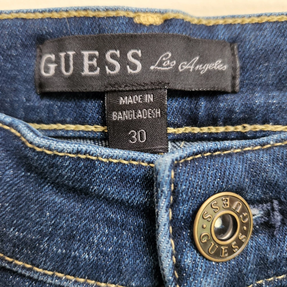 Guess Jeans Junior 30 Blue Denim Relaxed Tapered Frayed Retro Grunge Cowgirl - NEW with Tag - Measurements Approximate Waist across front - 16 in Rise - 12 in Inseam - 26 in Out Seam - 36 1/2 Leg Opening - 7 1/4 in - All Seasons, Night Out, Date Night, Vacation, College, School, Everyday, Day Out, Shopping, Party, Stylish, Chic, Trendy, Casual, Modern and Simple - Returns acceptable within 30 days of purchase unworn, with tags attached, in original condition - Check out my E-bay Store. Lots of Choices Available. Reduced shipping for 2 or more items. Let me know before you pay so I can send you an invoice to discount the shipping