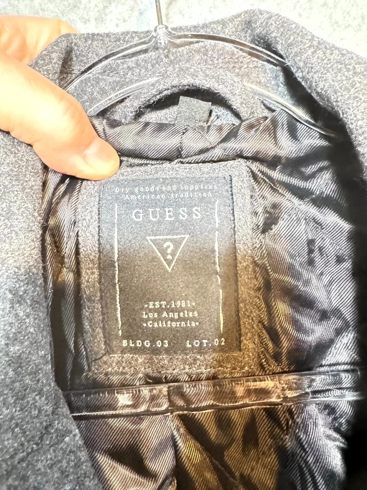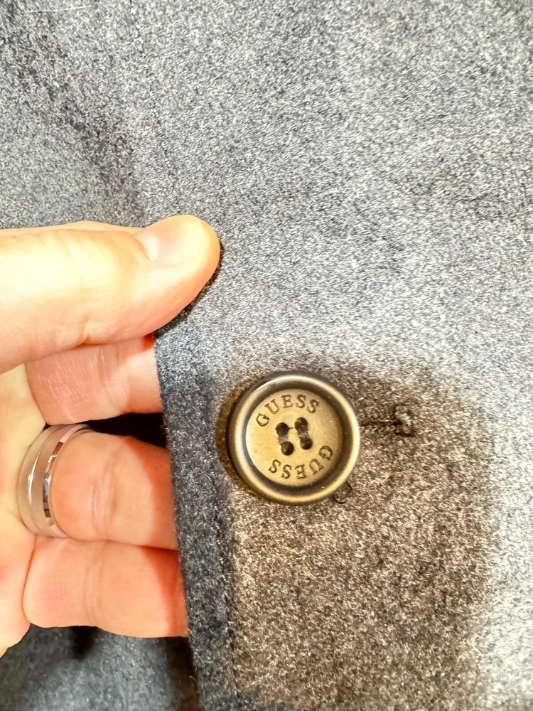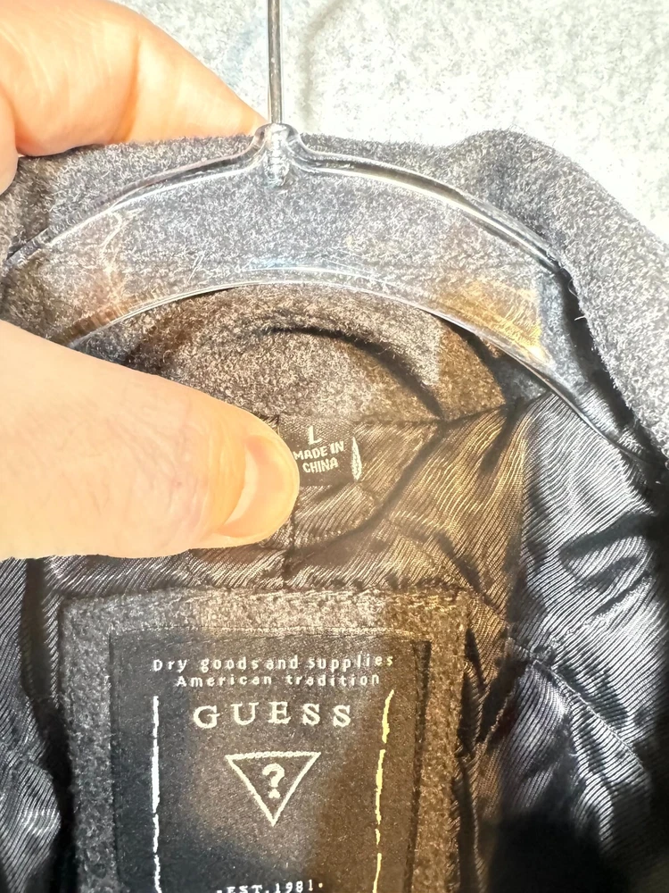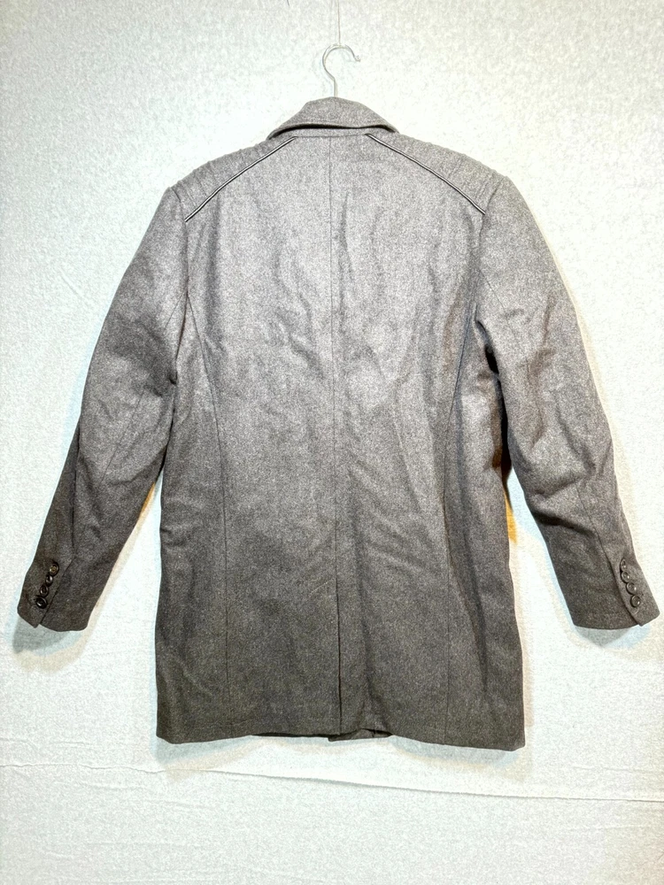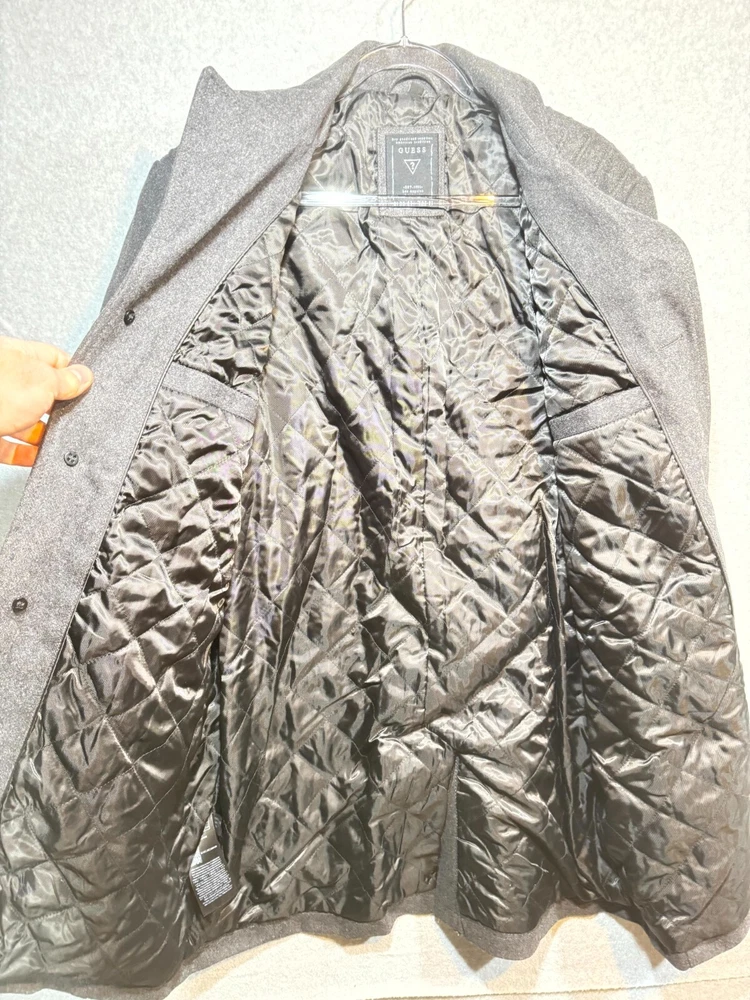 Guess Midi Winter Coat Men's Large Gray Lined Pockets Notch Lapel Button Front.