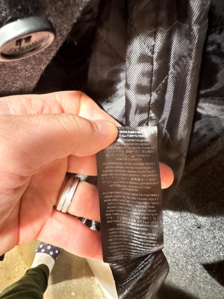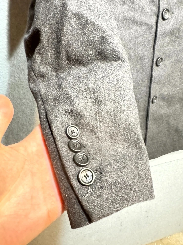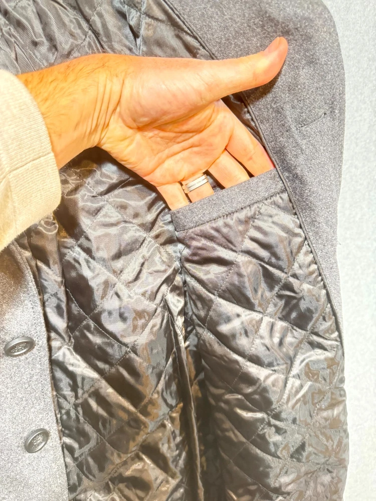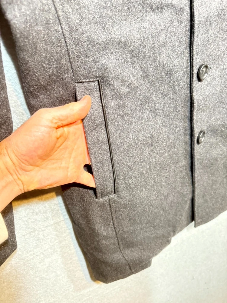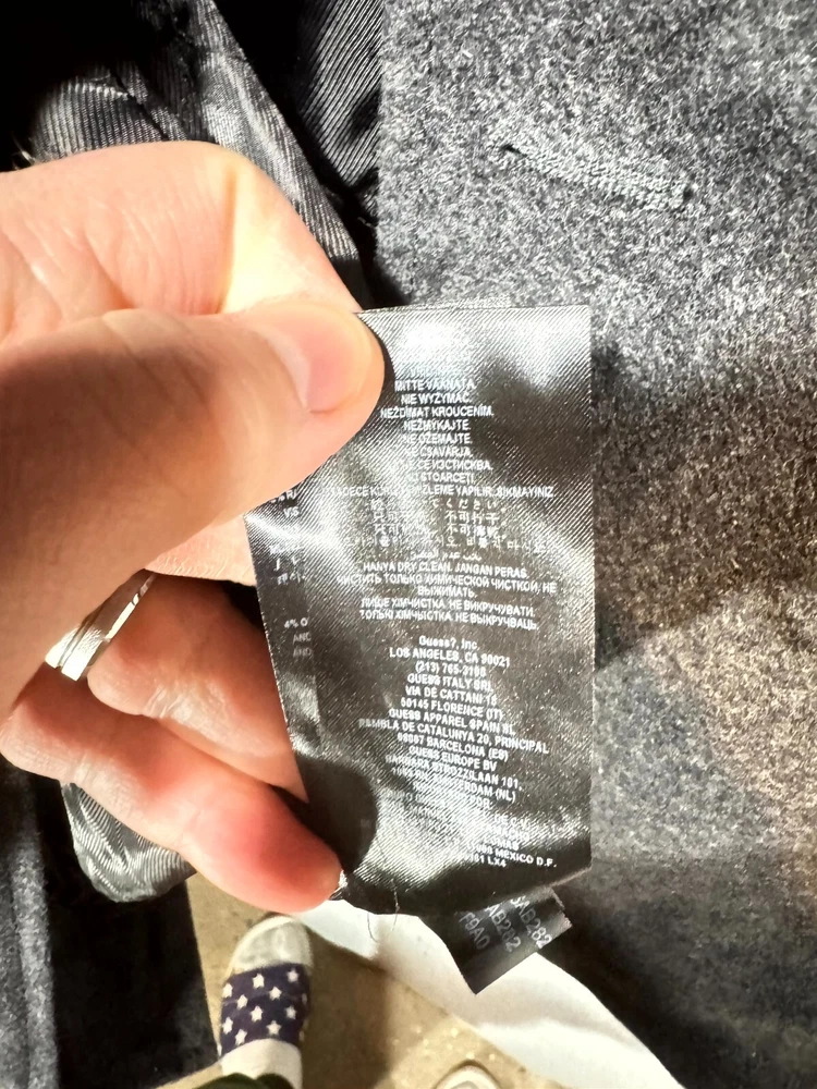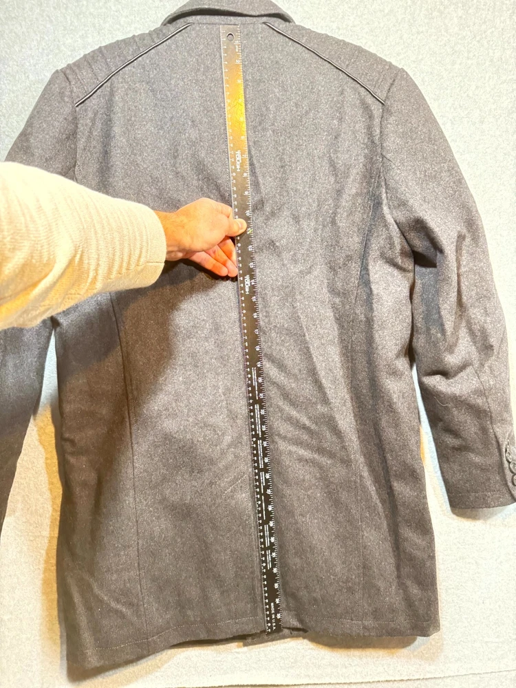 Guess Midi Winter Coat Men's Large Gray Lined Pockets Notch Lapel Button Front.