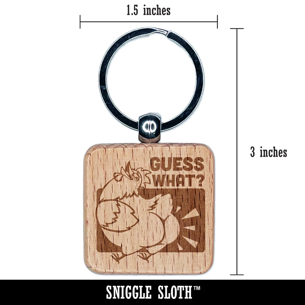 Guess What Chicken Butt Funny Engraved Wood Square Keychain Tag Charm