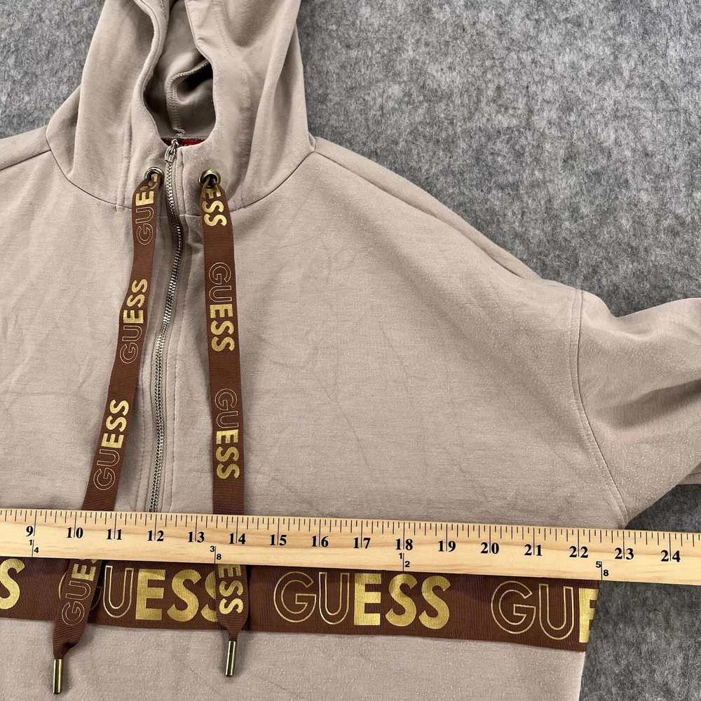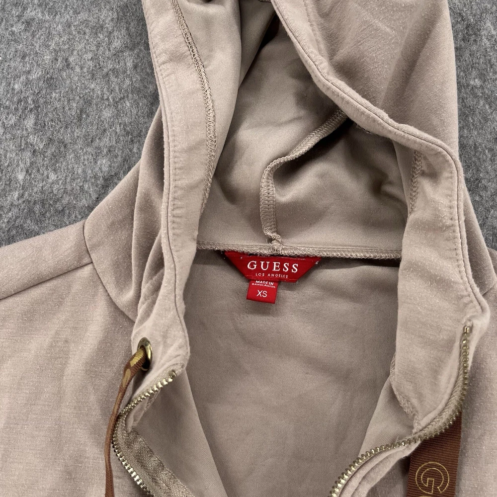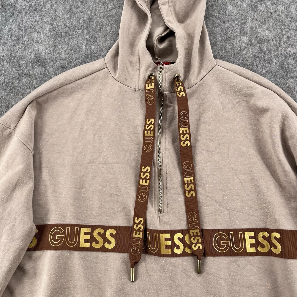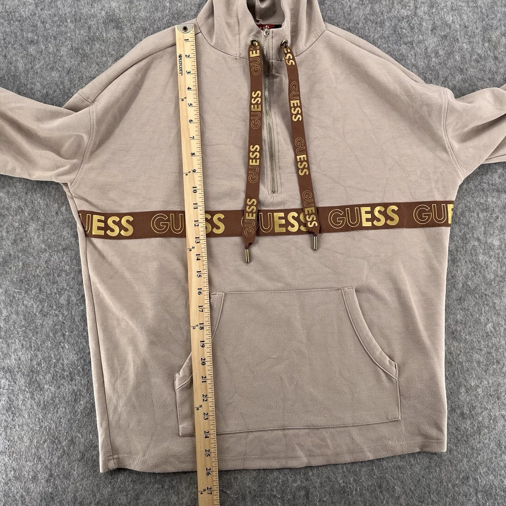 Features: Oversized Brand: GUESS Style: Tunic Size: XS Type: Hoodie Department: Women Accents: Logo Occasion: Activewear Size Type: Regular Color: Beige