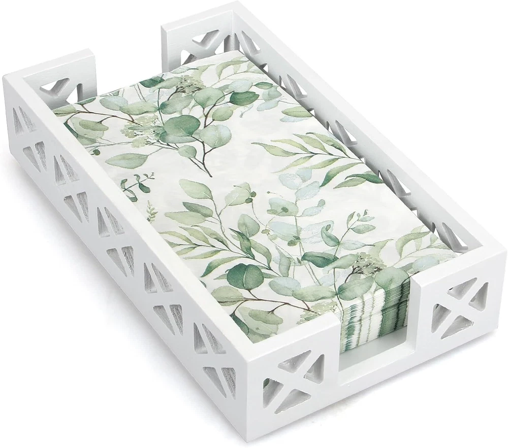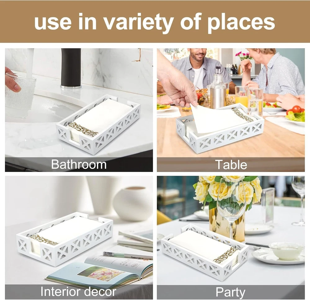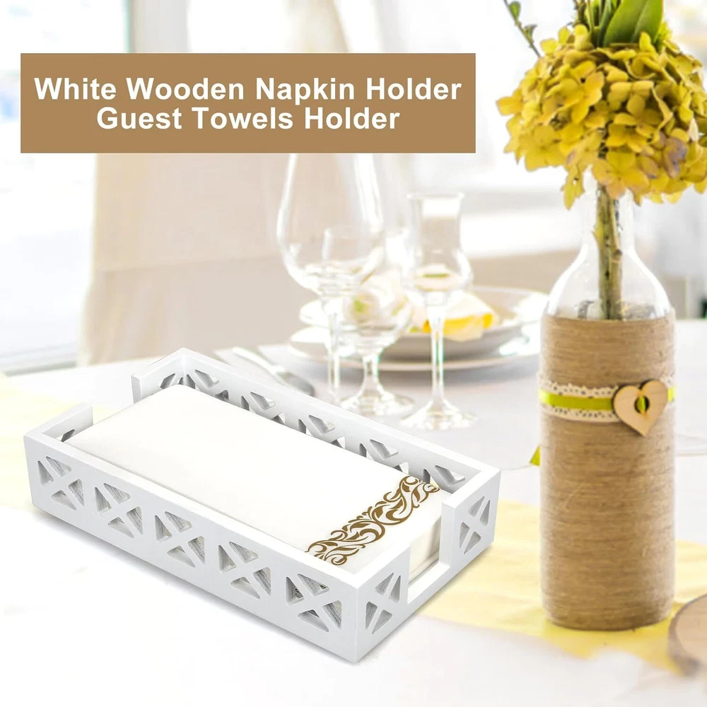 Guest Towel Holder Tray for Bathroom Napkin Modern Disposable White Product Details Color: White Material: Wood Brand: Renawe Product Dimensions: 2"D x 5.5"W x 9.5"H Item Weight: 0.18 Kilograms Style: countertop hand towel holder Manufacturer: Renawe Item Weight: 6.4 ounces Country of Origin: China Item model number: towel holder for bathroom STYLISH NAPKIN HOLDER: This wood napkin holder has a pretty hollow-carved design. Made well, nice looking, good quality. PERFECT GUEST TOWEL HOLDER: Measures 9.5 x 5.5 x 2 inches, fits standard 8.5 x 4.5 inch guest towel/buffet napkins. Goes with your bathroom and holds a lot of hand towels. DECORATIVE NAPKIN HOLDER FOR TABLE: Just what you needed for paper towels. This disposable hand towel holder organizes your guest towel and buffet. Great paper towel holder for bathroom, kitchen, bar countertop. NICE QUALITY: This cloth hand towel tray is attractive, sturdy and fits the paper hand towels nicely. Looks great in bathroom. Meets intended use perfectly. GREAT PAPER TOWEL TRAY: Be available anywhere, not just napkin holder for bathroom or kitchen. Whether you want it for outdoor picnic, party, restaurants, cafés, or just for special occasions.