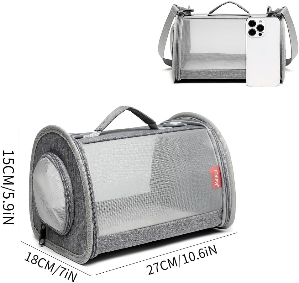 【Large Size But Foldable】Large Expand Size: 5.9*7*5.9 inch. Large capacity is big enough for hedgehog, hamster, squirrel, parrot, rat and squirrel etc small animals. The small pet carrier can be folded for easy carrying out and indoor storage with the the Foldable Size: 1.6*10.6*7.9 inch. 【Transparent Breathable Mesh Design】2 transparent mesh windows on the hamster carrier and 1 side opening mesh door are designed to ensure fresh air and air circulation for your furry child and they can enjoy the scenery. There is a side pocket which is very convenient for you to foldable bowls, toys and store food. 【Material】The material is PET breathable gauze +Oxford cloth. It is normal for aggressive rabbit and hamster to chew and bite anything so please put some hamster teething toys or food in the carrier before going out. 【Portable and Safety Designer 】This small animal carrier is easy to carry and store, The hamster bag has a hand strap and an adjustable shoulder strap, so you can choose a more comfortable way of carrying. It’s very good option for travel to vet, short trip to vet. 【Easy To Carrier】This small animals carring bag has one removable support mat which can be washed by hand or machine, easy to clean. The small animal carry bag is light, easy to fold, and carry. Product Description Product Description Suitable for pet display More details side opening mesh door Side opening mesh door,easy access for pets pocket Convenient to place foldable bowls, toys and store food. Wear-resistant buckle Strong bearing capacity Zipper folding Can be folded and placed at any time