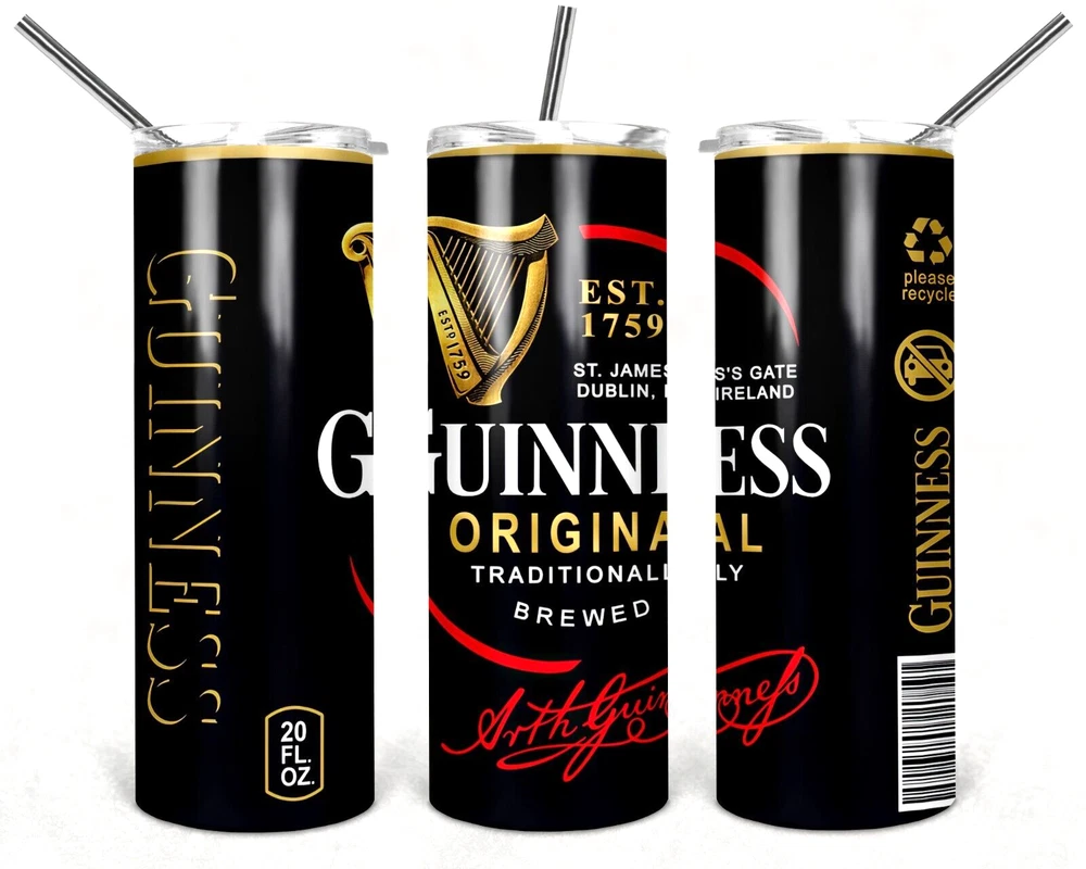 Guinness Original Multicolor 20 oz Insulated Tumbler Box Lid Clear Straw New