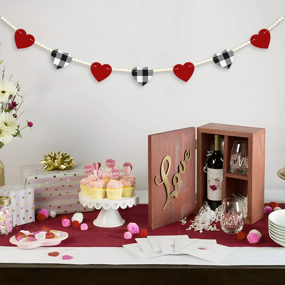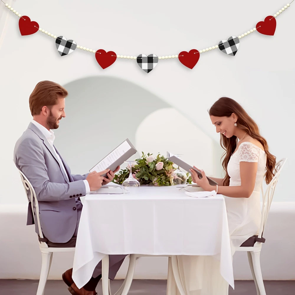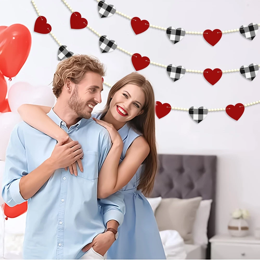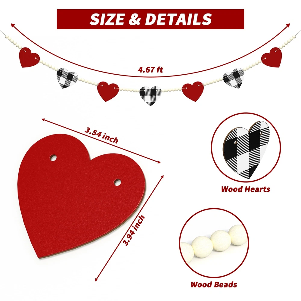 Valentines Day Decor - This Valentines day garland designed with red heart and black&white buffalo plaid heart, very fitting for valentine's day theme. Quality Material - The heart banner with clear printings and bright colors, made of quality wooden material, thick and sturdy, can be used for a long time. Proper Size - The total length of garland is 4.67ft, suitable for fireplace, window, wall and so on. Great Gift Idea - These lovely and delicate wooden decorations are great home decorations for Valentines day and also good holiday gifts for family, friends and colleagues. Decorate Anywhere - A ideal Valentine's Day home decorations for window, wall, door, shelf, fireplace, kitchen and anywhere you like. These beautiful little things will make your home full of holiday atmosphere!