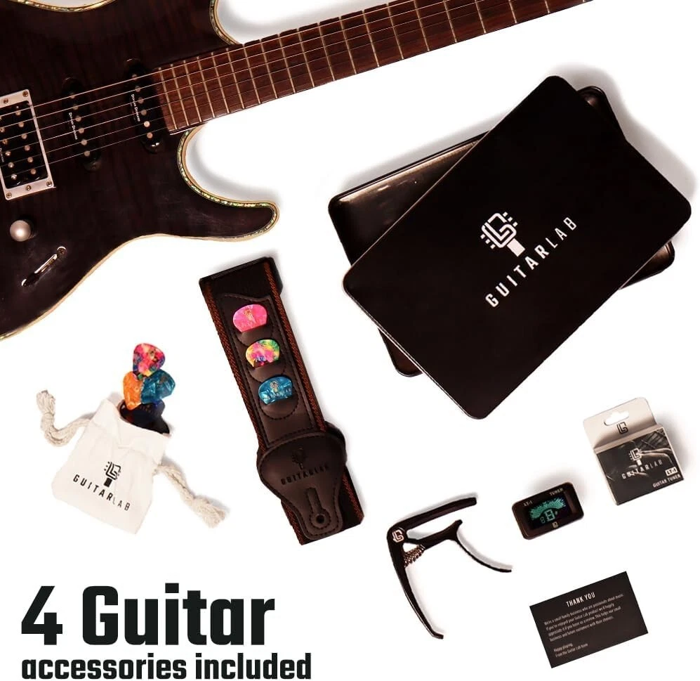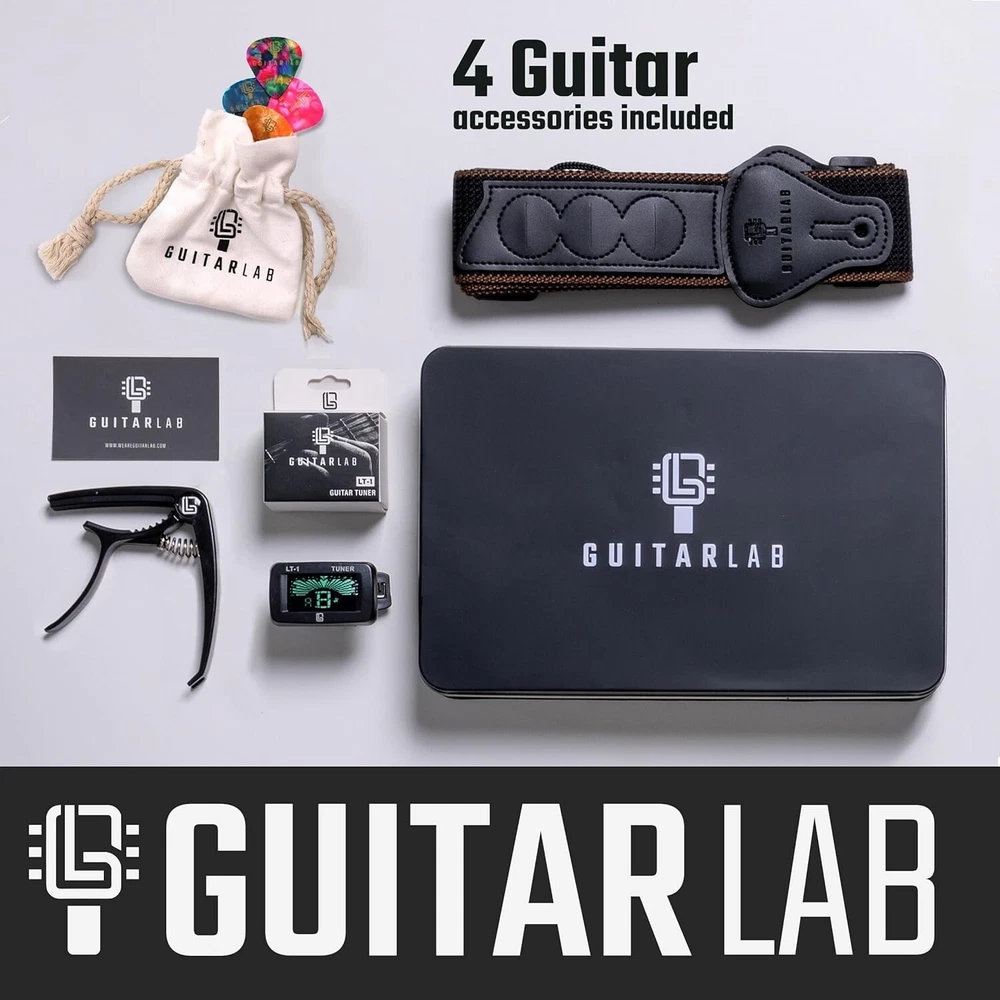 PERFECT GUITAR GIFT SET – Comes in a sleek, branded metal tin, ideal for gifting. This versatile guitar accessories kit is suitable for acoustic, bass, and electric guitars, making it the ultimate gift for guitar lovers. ALL-IN-ONE GUITAR ACCESSORIES KIT – Includes a premium leather guitar strap with a built-in pick holder, 9 unique picks, an electric guitar tuner clip, and a zinc alloy capo. All essentials in one stylish and functional kit. FOR BEGINNERS & PROS – Whether for beginners or seasoned players, this kit has essentials for guitarists of all ages. A thoughtful guitar accessories gift for men, women, or kids learning to play. BUILT TO LAST – Our family-run brand focuses on quality craftsmanship. Each accessory is made from durable materials, designed for long-lasting use by passionate guitarists. GIFT-READY WITH SATISFACTION GUARANTEE – Ideal for birthdays, holidays, or special occasions. We stand by our product with a 100% satisfaction guarantee—reach out anytime, and we’ll respond within 48 hours.