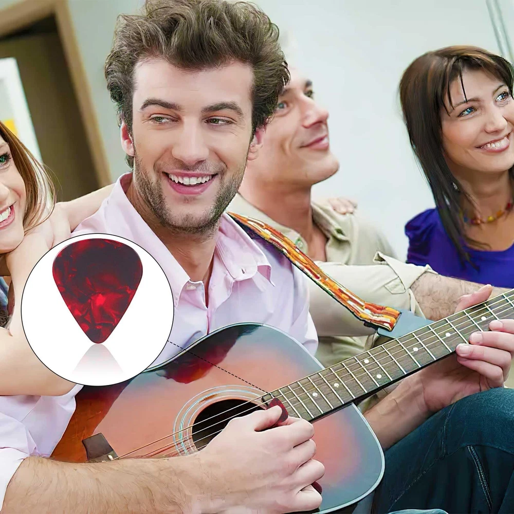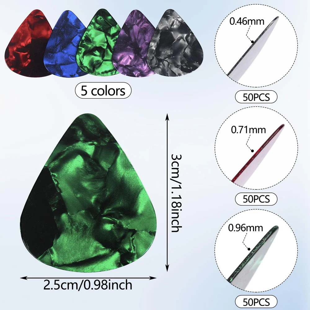 The 150 pieces guitar picks set is a multi-functional set, designed for different types of musicians and music lovers. Package includes 3 different thicknesses of 0.46mm, 0.71mm and 0.96mm, 50 pieces for each thickness. Have 5 colors: black, green, blue, purple and red. Various colors can meet the different playing needs of guitarists, whether delicate fingering or intense string playing, you can find a suitable dunlop guitar picks. These tortex guitar picks are made of good-quality celluloid, ultra-thin, lightweight, tough, durable and not easy to break, providing stable timbre performance. Accurate cutting and smooth surface provide comfortable feel and accurate playing control, so that you can easily play the music you want. The tortex guitar picks adopt classic heart guitar pick shape. The dunlop guitar picks are not only cute in appearance, but also fits your fingers very well, which helps players to express their feelings well and play beautiful music. Different thickness of guitar picks will have different effects on sound quality. Choosing the appropriate thin guitar picks can make your music more pure and smooth, can meet your requirements for sound quality. The tortex guitar picks set is suitable for playing various musical instruments and styles, such as folk guitar, electric guitar and bass. The guitar picks are also ideal choice for practicing, rehearsing and performing, which will make your music performance more fluent and free. The tortex guitar picks not only have a variety of thickness and color choices, but also with reliable quality and multiple applications, making the thin guitar picks ideal choice for guitarists and music lovers. No matter beginners or experienced musicians, they can find the appropriate dunlop guitar picks and add colorful to the music journey. Package Contents: The guitar picks set contains 150 guitar picks with different thicknesses of 0.46, 0.71 and 0.96 mm. Different thicknesses of tortex guitar picks produce different playing timbre and touch, you can choose the suitable thin guitar picks according to your own needs and personal preferences Good-Quality Material: The guitar pick is made of good-quality celluloid material, which is ultra-thin, lightweight, tough, comfortable, durable and not easy to break, providing stable timbre performance, allowing you to operate easily Five-Color Mixing: The guitar picks set have 5 different colors: black, green, blue, purple and red, which are rich in colors, can meet your personal needs, so that you can try different color combinations and match a beautiful decor for your instrumental performance Classic Guitar Pick Shape: The guitar picks adopt classic heart guitar pick shape. The guitar picks are not only cute in appearance, but also provides a comfortable feel when playing, which fits your fingers very well and helps players to express their emotions well and play beautiful music Wide Application: The guitar picks set is suitable for playing various musical instruments and styles, such as folk guitar, electric guitar, bass, violin, ukulele and so on. The thin guitar picks are also ideal choice for practicing, rehearsing and performing, which will make your music expression more fluent and free