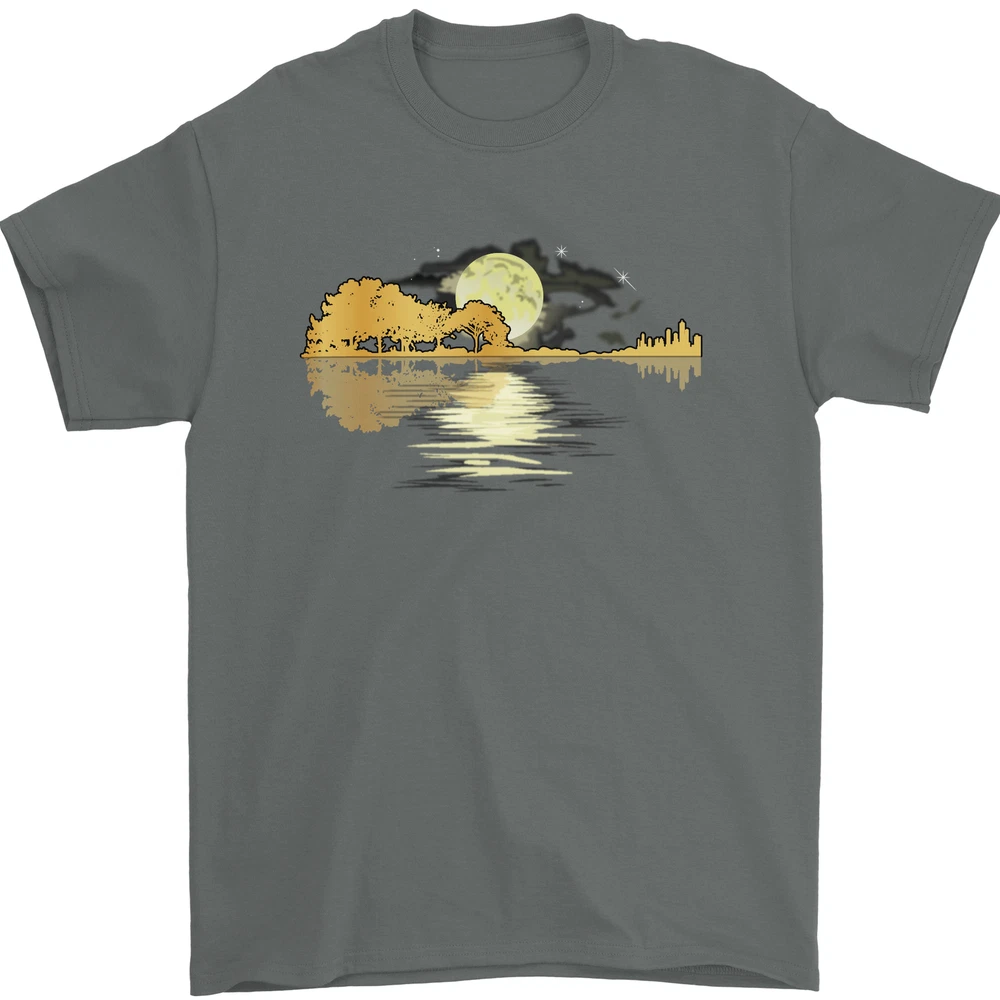 Guitar Reflection Guitarist Bass Acoustic Mens T-Shirt 100% Cotton