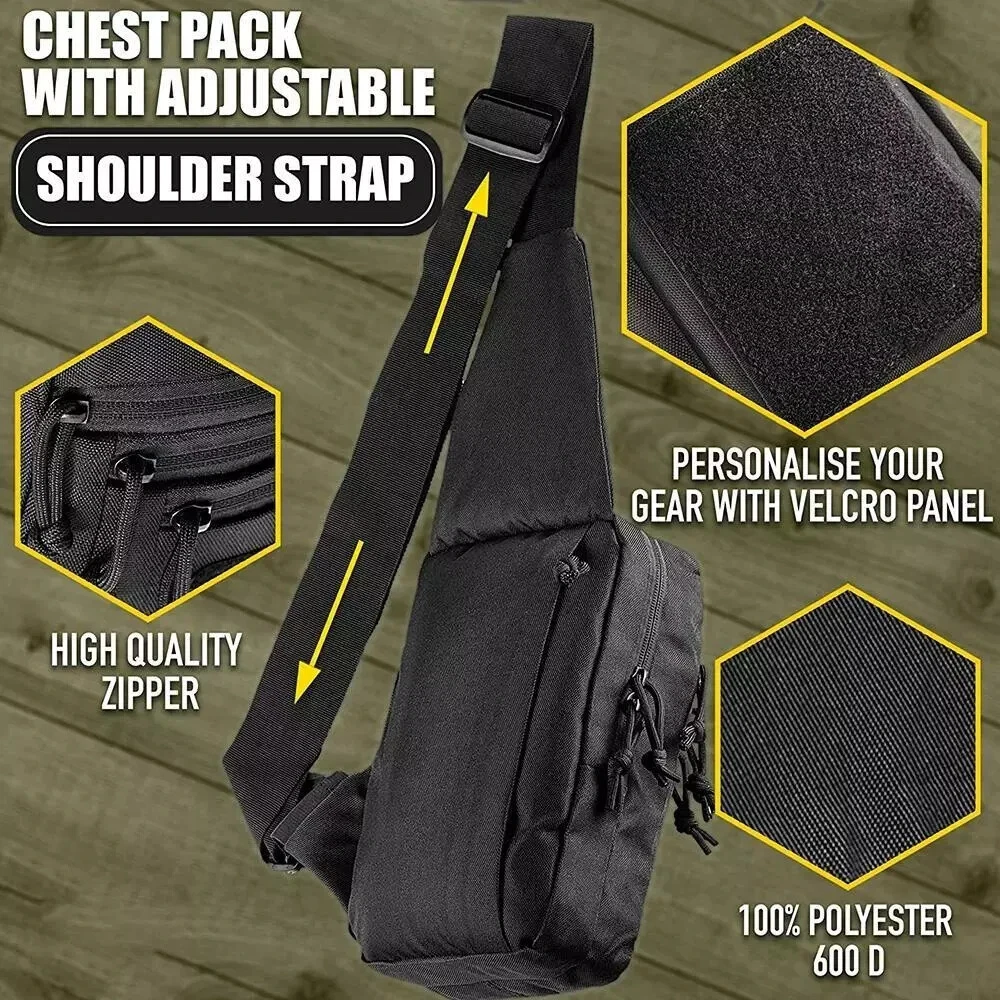 Description Concealed carry sling bag for men - Dimensions of main compartment approx 10 x 8 inches - Total height 16" Organize your accessories in five compartments and carry one gun bag for handguns Universal pistol holster inside of front pocket - Hot-pull strap for quick eccess to the gun Mens tactical sling bag for concealed carry of pistol Made of high-quality sturdy zippers, nylon material and polyester fiber,600D Oxford fabric has ultra-high density, good wear and water resistance. The built-in soft padding can protect your firearms well during storage and transport.