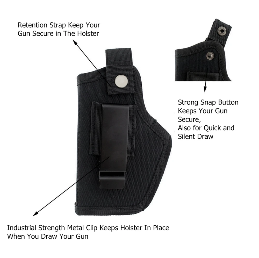 Gun Holster Tactical Concealed Carry Left/Right Hand IWB OWB /Choose Gun Model Feature Naturally fit subcompact and compact handguns, Cut the thread to fit medium and large handguns The heavy d uty belt clip ensures your holster stays put when you draw your gun no matter the situation The snap on our retention strap is strong enough that it won't fail yet easy enough to pop that you can still quickly get to your gun in a bad situation. Remolded metal clip for Ambidextrous usage on either left or right hand side. Material: Constructed by strong 600D nylon to prevent tearing with use. Small size: Fit G26,27,29,30,39,28,33,36 and 43, M&P Shield in 9mm, .40, and .45 ACP, Ruger LC9 ,Taurus Slim Line, PT111, Springfield XD Series, Beretta,Bersa ,Kahr Arms,Colt,Walther,and other Compact Pistols; Large size - Fit Most 9mm 357 40 45 PISTOLS. G17,19,23,25,32,38 Sig Sauer P320 Springfield XD-S 4" Springfield XD-E and any pistol with a slide length between 6.5" - 7.2" long. Package 1 x Concealed Carry holster Delivery details Payment Terms of sales Feedback Contact us Delivery details 1. BUSINESS DAY MONDAY- FRIDAY FAST SHIPPING FROM USA. 2. All orders and payments received before 4PM EST (1PM PST) will be shipped the same business day. 3. No shipping on Saturday,Sunday or USA Public Holidays 4. No responsibility for any custom duty Payment We accept payment by PayPal only. Terms of sales 1. We offer a 60 day money back guarantee or exchange. 2. Buyer pays return shipping and we pay replacement shipping. 3. If you want to initiate a return,please contact us to get a returning address before sending the item back. Feedback 1. We strive to provide the best products and services. 2. Your positive feedback 5 stars DSR help us do better. 3. If anything about your transaction did not meet expectations, please CONTACT US and give us the opportunity to make things right. We are always here to help. Contact us Please do not hesitate to CONTACT US . You can message 24/7 on eBay for all questions and inquiries. We will get back to you within one business days at the latest from Monday- Friday.