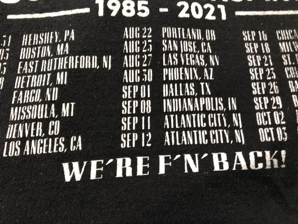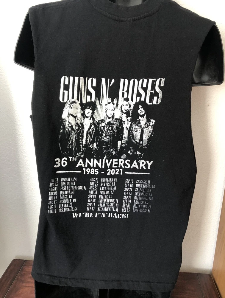 Extremely rare original Guns N Roses 36th Anniversary WE’RE’F’N Back USA 24 Cities Tour Muscle sleeveless men’s limited edition 2 sided shirt is up for sale. This shirt is still in good wearable shape as exactly displayed on the above pictures. Actual measurements: Tag size: Large Pit to pit: 21” Collar to hem: 28” I usually ship within one day of receiving payment. Won’t last!