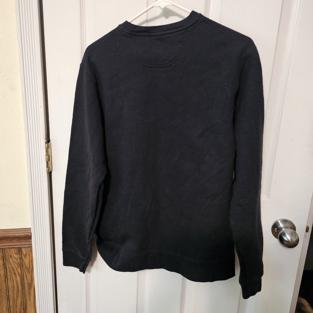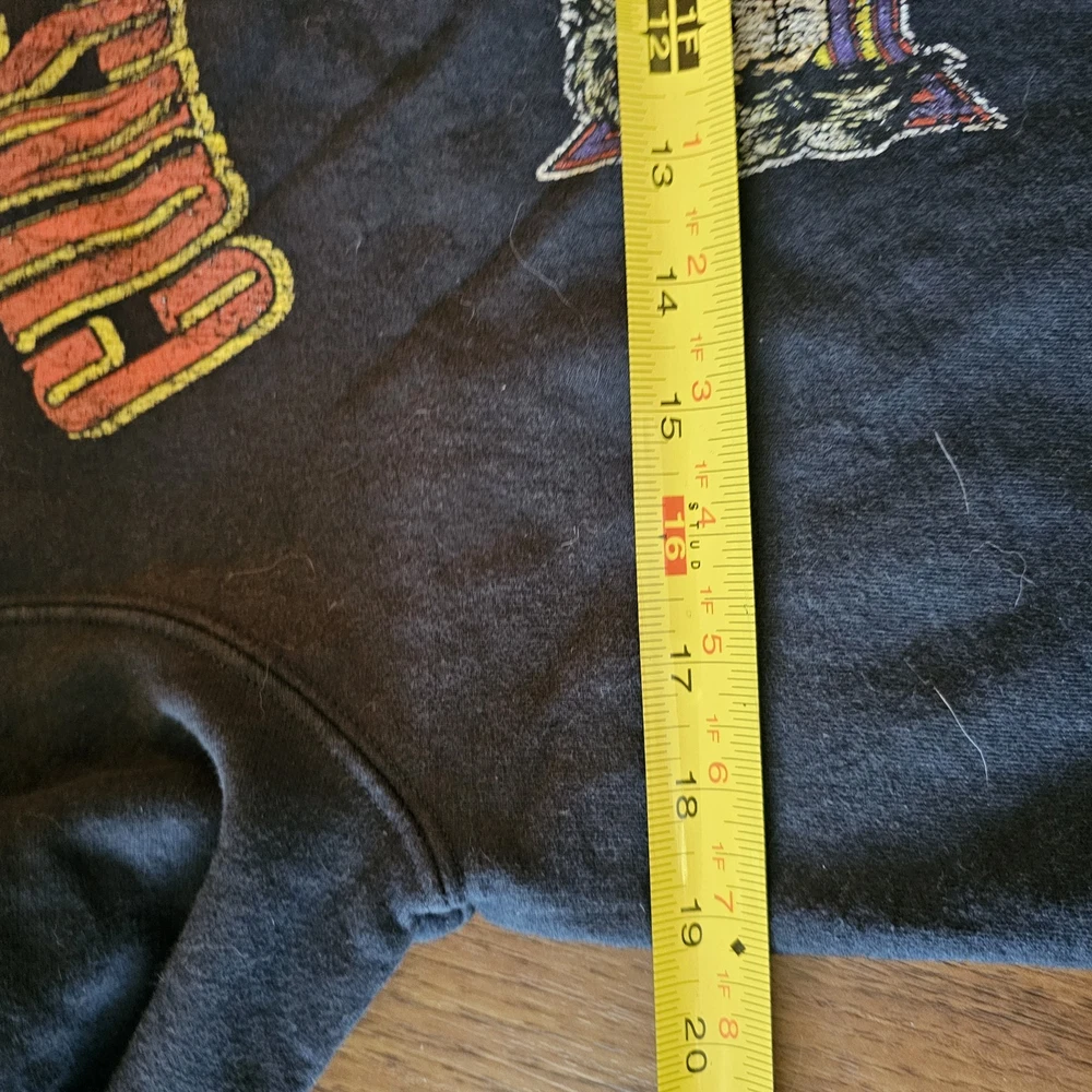 The Guns N' Roses Appetite for Destruction Cross Logo Sweatshirt in size M is a stylish and comfortable pullover sweatshirt designed for unisex adults. Featuring the iconic Guns N' Roses brand logo, this black sweatshirt has long sleeves and a crew neckline, making it a versatile and classic piece for any wardrobe. Perfect for fans of the band or anyone looking for a fashionable and high-quality sweatshirt to add to their collection. Tags are missing to check measurements for size.. either medium or large. See photos for wear sold as is