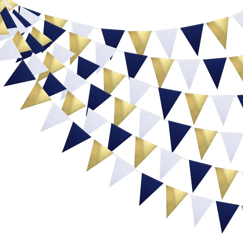 Guzon 30 Feet Navy Blue Gold White Party Decorations,Hanging Glitter Paper Triangle Flag Pennant Banner for Bachelorette Engagement Wedding Party Supplies Baby Shower Decorations Guzon 30 Feet Navy Blue Gold White Party Decorations,Hanging Glitter Paper Triangle Flag Pennant Banner for Bachelorette Engagement Wedding Party Supplies Baby Shower Decorations Package:3 pack of double sided Navy blue,gold,white decorations triangle party banner. Each string is 3 meters with 15 pieces triangle flags,so total is 9 meters = 30 feet and 45 pieces flags. Size of each flag:17cm x 13cm/6.7" x 5.1" (L x W). Our Navy blue Gold white pennant bunting banner are hand-made and machine-sewn together with thread,safe and non-toxic,durable and reusable. Using Occasion - They can be hung from branches and walls,trees,tables,windows or door. Party Supplies-Such as:Graduation Decoration, Birthday,Navy Party, Baby Shower, Wedding, Graduation, Birthday, Bridal Shower, Wedding, Engagement, Bachelorette, Gender Reveal Party Supplies . Shipping from the USA All of our products are shipped from the USA, ensuring quick delivery to your destination. Payment We offer the following payment methods: PayPal, credit card, bank transfer, and eBay's secure payment system. Free Shipping & Free Returns Shipping within the USA is FREE. Additionally, any return is absolutely free for you. Risk-Free Purchase You have the option to return an item within 30 days without any justification. We cover the return shipping costs! Fast Shipping We ship immediately upon receipt of payment. Generally, the package is delivered within 2-3 days in the USA. If it takes longer, we will contact you. Quality and Costs Made in Europe, USA, China No customs fees or additional charges Total satisfaction guarantee Invoice with declared VAT available upon request in .pdf format Feedback Your feedback is very important to us. After you pay for your purchase, you will automatically receive positive feedback from us.