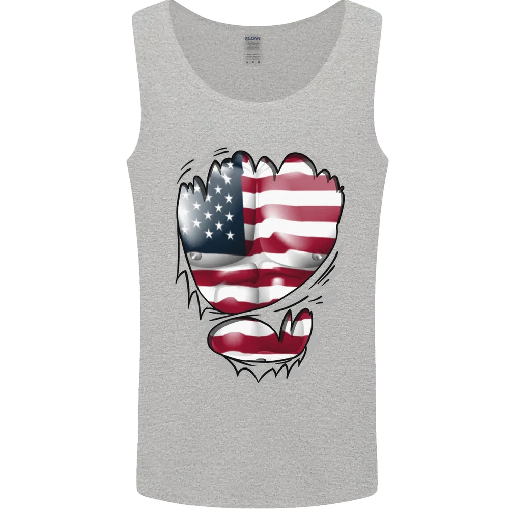 Gym Stars & Stripes American Flag Ripped Mens Vest Tank Top