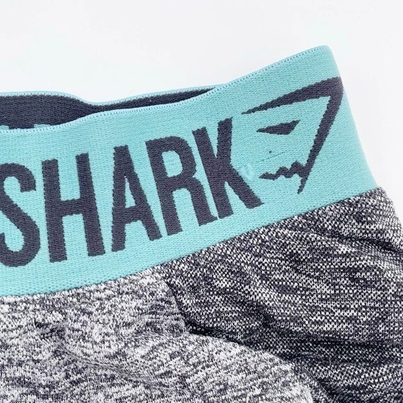 Gymshark Flex Leggings Charcoal Marl/Dusky Teal Dry - moisture management Seamless knit Elasticated performance waistband Physique contouring design Full length Size Small Great pre-owned condition Small snag on waistband - see photos Approximate measurements laying flat: Waist: 11.5" across Rise: 6" Inseam: 29"