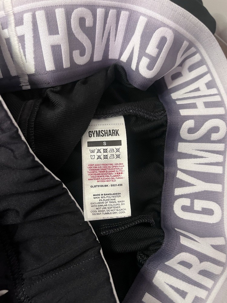 The Gymshark Recess Joggers in black, size small, feature a solid pattern with a tapered leg style and a slim fit. These activewear pants have a pull-on closure with a fold-over waistband that is adjustable for a comfortable fit. Made from a polyester blend, these joggers have elastic waist and pockets, perfect for activities like gym training, walking, CrossFit, and running. The high-rise waist provides compression in the waist area, making them ideal for various physical activities.