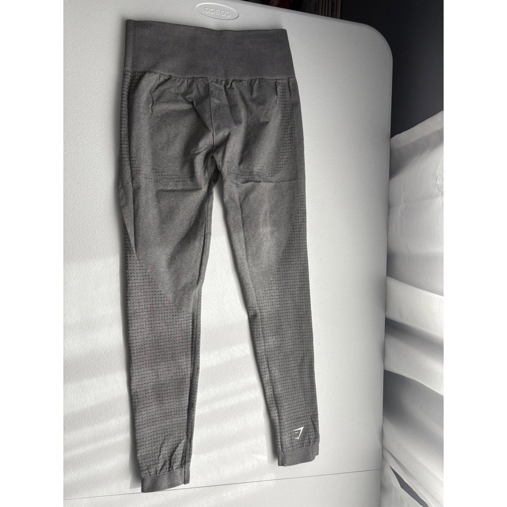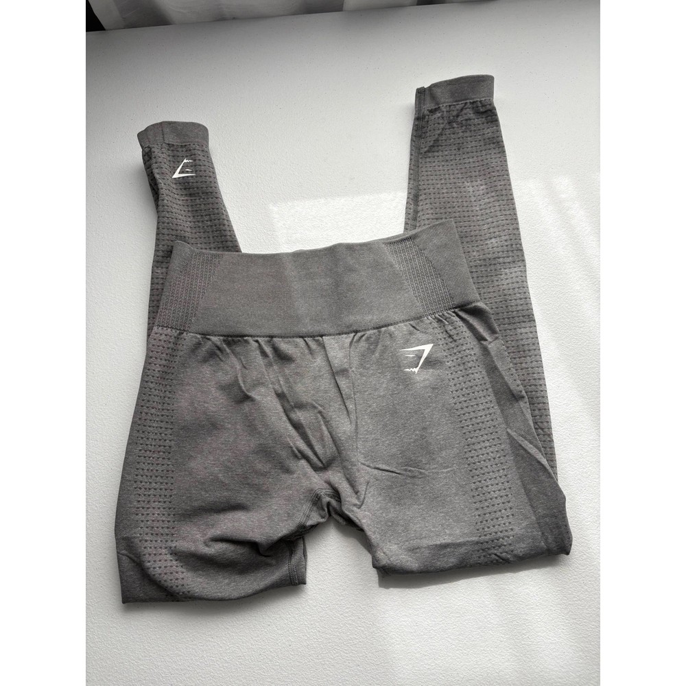 Gray Gymshark Vital Seamless leggings, perfect for your active Ilifestyle. These high-waisted leggings offer a flattering fit and comfortable support during workouts. The seamless design ensures a smooth feel against your skin, while the breathable fabric keeps you cool and dry. The subtle Gymshark logo adds a touch of sporty style. Ideal for yoga sessions, gym workouts, or running errands in comfort and style. Color: Gray Department: Women Style: Ankle Type: Leggings Material: Nylon, Nylon Blend, Polyester Blend, Elastane Features: High Waisted, Seamless, Breathable, Moisture Wicking, Stretch Pattern: Solid Rise: High (Greater than 10.5 in) Fabric Type: Blended Fabric Keywords: Gymshark, Vital Seamless, Leggings, High Waisted, Workout, Gym, Activewear, Gray Leggings, Seamless Leggings, Gym Leggings, Athletic Leggings, Medium, M
