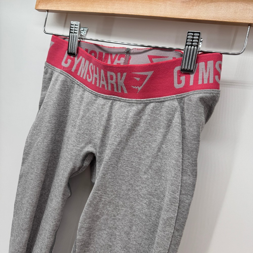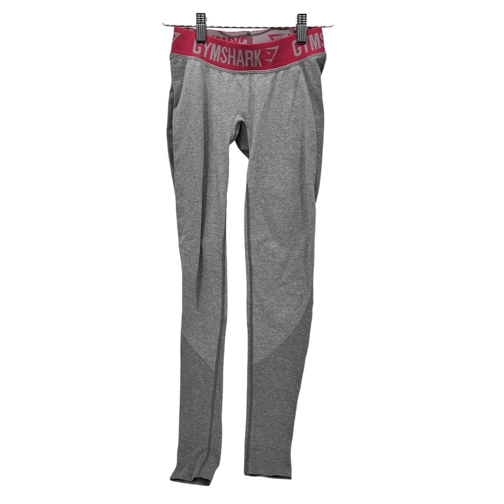 Gymshark Leggings Womens XS Gray Pink Full Length Flex Dry Moisture Management Very good condition, some band wear, see all pictures for views. •Waist: 22" Not stretched (elastic band) •Inseam: 26" •Rise: 6" Ships out same day or next open postal day. Thank you for your purchase, we appreciate you!