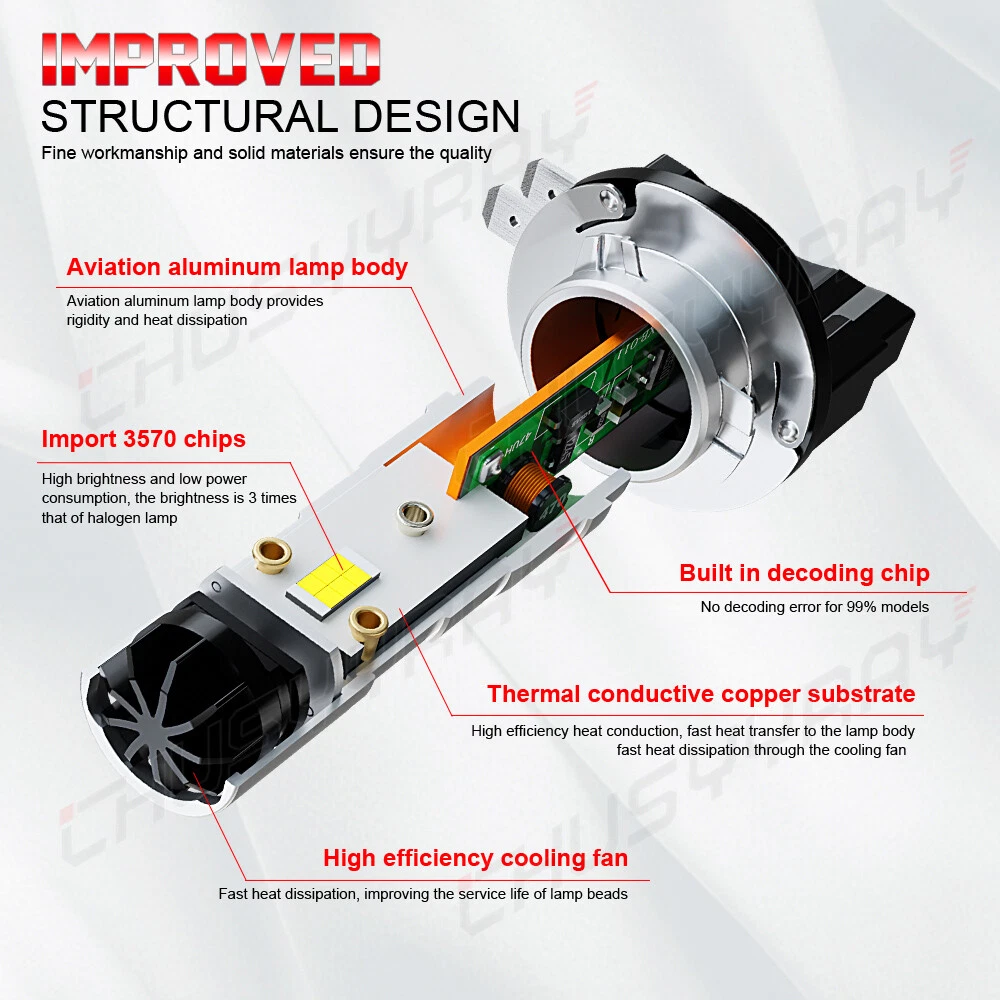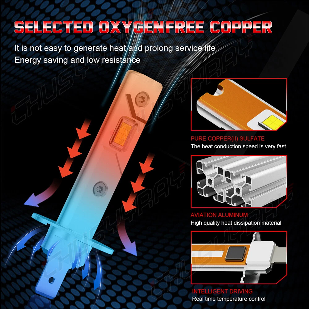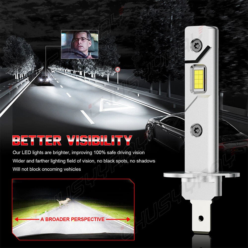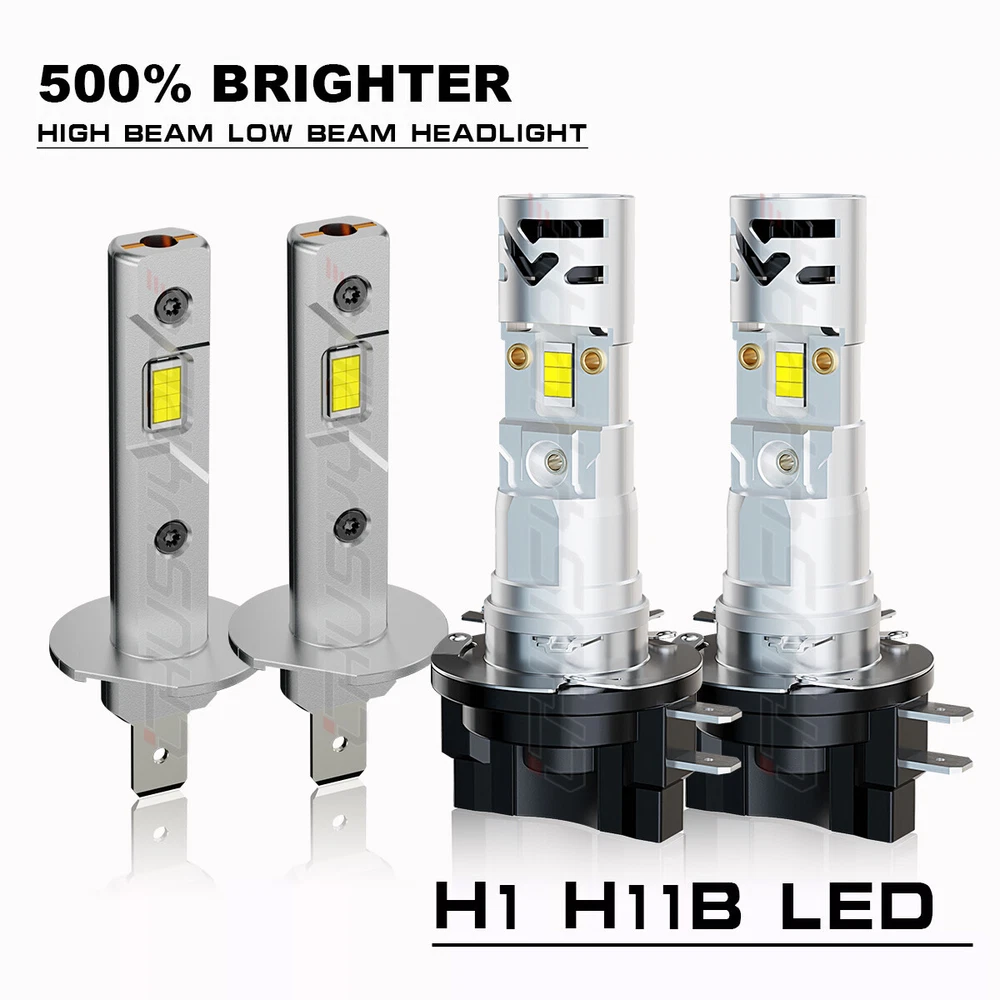 Notes: 1. Please check whether it is fit your vehicle before purchase. 2.The compatibility table is only for reference, please make sure to verify the bulb type of your vehicle before purchasing. We are happy to help if you need any further information. 3. If your shipping address is not to US, we will ship from CN stock, items will be shipped from our warehouse in South China. 4. Note: Check and confirm whether your low beam model is H11B, or H11 before purchasing. 4. Important Notice: Please notice that these bulbs will work with most vehicle's computer system without error. Except for For some European vehicles equipped with a CANBUS systems,such as For BMW, For Mercedes Benz, For German cars , our LED Headlights may not light up or flicker. You may simply add a set of load resistor (not included) to avoid these issues. Compatibility: H1+H11B Features: Application: Headlight High Beam / Low Beam / Fog Light / Driving Light / Daytime Running Light LED replacement bulbs are engineered for superior performance, exceptional looks, and increased safety. Wattage: 55W/Bulb 110W/Pair Color Temperature: 6000K Cool White Lumens: 4000LM/Bulb, 8000LM/Pair Working Voltage: DC 12V to 36V No delay to light up, Faster on/off response time Lifespan: 50,000 working hours, stable quality, long service life Description 1.Top CSP Chips,1:1 halogen’s light position with high illumination CSP LED chips. Good light type, Enhances your visibility at rainy, snowy, foggy days. 2.Built-in Intelligent IC driver and aviation aluminum material for best cooling and longer lifespan. 3.Better Performance. Stable current, no radio interference. Fast response time through a quicker light-up. 4.No delay to light up,Good Quality And Durable,Easy to Install. 5.This 6000K LED Lights bulbs can use as car Backup Light/Daytime Running Light/Brake Light/Turn signal Light Package Included : 4x H1+H11B LED Light Bulbs