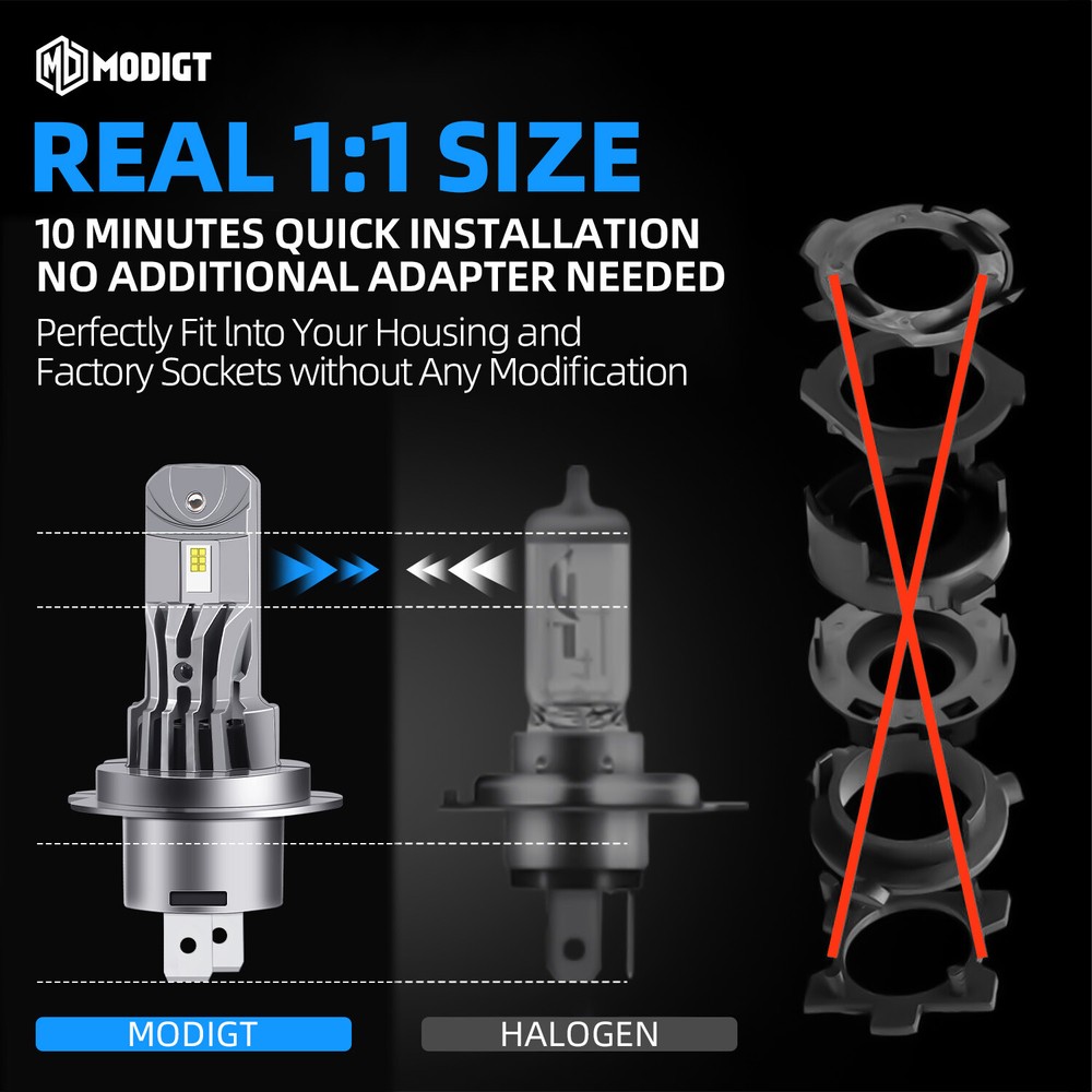 Package Included: 2 x H7 LED Headlights Bulbs Specifications Condition: 100% Brand New High Quality with Reasonable Price Bulb Size: H7 Voltage: DC 9V-32V Power:70W/Per pair Lumen: 8000LM(4000LM/Bulb),no blind zone Color Temperature: 6000K LED type: CSP LEDs LED Chips: Customized LED chips Heat Dissipation Theory: Heat Pipe Technology + A380 Aluminum Heatsink Beam Angle: with 360 degree full angle illumination. Material: Aluminum material originally designed for aircraft Lifespan: 100,000 hours Operating Temperature: -40℃~+90℃ Warranty: 4 year warranty Package: 2xH7 LED Headlight Qiaobali Best choice of motor parts H7 Modigt LED Headlight Bulbs 8000lm Kit High Beam 6000K Cool White Bright Lamp Package Included: 2 x H7 LED Headlights Bulbs Specifications Condition: 100% Brand New High Quality with Reasonable Price Bulb Size: H7 Voltage : DC 9V-32V Power :70 W/Per pair Lumen : 8000LM(4000LM/Bulb), no blind zone Color Temperature : 6000K LED type: CSP LEDs LED Chips : Customized LED chips Heat Dissipation Theory: Heat Pipe Technology + A380 Aluminum Heatsink Beam Angle : with 360 degree full angle illumination. Material : Aluminum material originally designed for aircraft Lifespan : 100,000 hours Operating Temperature : -40℃~+90℃ Warranty : 4 year warranty Package: 2xH7 LED Headlight Features: High-purity brightness The light-effect boundary is clear, without stray or dazzling light, making a great contribution to the safety of the driver.With High-purity brightness, strong penetrability and superior stability,Energy saving, environmental protection, through strict test, Use safer driving in the car,highly recommended. Optimized Beam Pattern This bulb has 1:1 halogen filament design, apply for the same length and position as the halogen bulb. It focuses light to match the standard beam pattern and does not blind oncoming traffic, no dark spots, or foggy light. 600% BRIGHTER THAN HALOGEN Utilizing upgrade Flip chips with 6000k cool white, the H7 LED headlight bulbs providing further and wider visibility for you to see the deer, wild animals, falling rocks or other obstacles in advance to ensure safer driving at night. Shorter Size|Quick Installation Without Struggling Built with a smaller/ shorter size than the common LEDs in the market without building an external driver, directly plug into the factory housing. The same design with the OEM halogen bulbs for easy installation. New Cooling System|Better Heat Dissipation, Last Longer New cooling system with a unique dual ball-bearing fan preventing the driving from the loud noise from the cooling fan, the all-in-one compact aluminum design brings better heat dissipation than common plastic design, and intelligent IC make sure the LED conversion kits last longer.It provide Supercooling Ability, Which Ensures a Longer lifespan of up to 10,0000 hours IP68 Waterproof IP68water-resistant and designed for use in heavy rains, rainproof housing, can work even in extreme situations. Install Caution : As a safety precaution, make sure that the car has had time to cool down properly before starting the installation process. Put the vehicle into park or make sure it is securely in gear. Make sure to have the ignition turned off and the keys removed. Be careful to avoid burns, especially when turning on or off the vehicles lighting. Be careful to avoid crushing or cutting the bulbs. Also make sure to not touch the bulbs with your fingers, as this will cause blotting. Fully examine the connection of the contact points, ports and the wires as faulty connections can cause lighting problems. Make certain that the end of the bulb does not come in contact with the interior light shield of the headlight when adjusting the bulb. Please Note: Please check your car manual or original bulb to confirm the bulb size, length is correct or not before purchasing to save your time. Note: Please check whether it is fit your vehicle before purchase. The compatibility table is only for reference, please make sure to verify the bulb type of your vehicle before purchasing. We are happy to help if you need any further information. Please make sure the headlight housing has enough space for installation before purchasing. Professional installation is highly recommended. If you have any questions, please feel free to contact us. Item Specifics Brand Modigt Lighting Technology LED Suitable For Headlight High Beam Bulb Fitment Code H7 Number of Bulbs 2 Light Color Clear Type Light Bulb Waterproof Rating IP68 Lighting Type Specialty Headlight and Fog Light Color Temperature 6000K Wattage 70W Voltage DC 9V - 32V Lumens 8000LM/Set(4000LM/Bulb) Material Aluminum material originally designed for aircraft Bulb Life Hours Up to 100,000 Hours Placement on Vehicle Front, Left, Right Fitment Type Direct Replacement Manufacturer Warranty 4Years Beam Angle 360 Degrees Interchange Part Number H7 Operating Temperature -40°C ~ 90°C Features2 High brightness, long life, low fuel consumption Features3 Good focus intensity , long distance illuminating Model LED Bulbs / LED Lights Sealed Housing Dustproof & Waterproof Aluminum Heatsink Bundle Description LED headlight replacement Brightness 600% Brightness than halogen Chips Package includes 2xH7 LED Headlight Manufacturer Part Number Daytime running driving DRL plasma lighting Othere Part Number Upgrade for Sylvania incandescent bulb Function Replacement Halogen Light Bulbs Payment 1. It will be much appreciated that you finish your payment asap or it will make UPI (unpaid item case) on your account leading to be suspended or restricted by eBay when those UPI cases carry over to certain amount. 2. Any problems please contact us for more details. Shipping 1. All items will be shipped to buyer's ebay address. 2. All items will be shipped within 24-48 working hours upon receipt of payment, and multiple items will be combined shipping. 3. In most cases, delivery takes around 3-5 business days, it's highly depended on the efficiency of the shppi