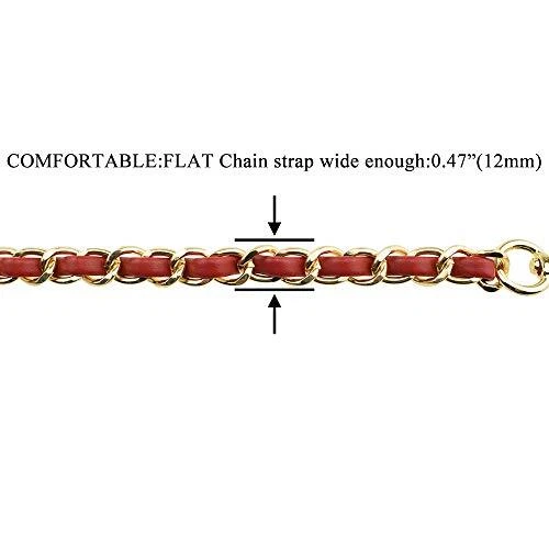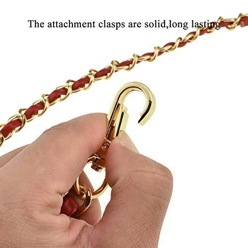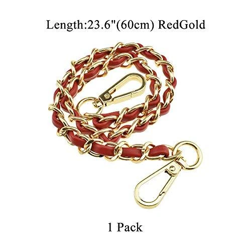 Return Policy Fast Delivery Trusted seller HAHIYO Metal Plus Synthetic Leather Purse Chain Strap Length 23.6 Inches Red Gold for Shoulder Cross Body Sling Purse Handbag Clutch Replacement Comfortable 0.47 Inches Wide 5mm Extra Thick 1 Pack Product Description Metal plus synthetic leather purse chain strap , softer and more comfortable than metal chain! Stronger and more durable than leather chain! FIND YOUR PERFECT SIZE!Purse chain strap total length:23.6”(60cm),perfect length for Handbag! Gold chain for bags.Chain is nice finished,match the Gold tones on your purse. COMFORTABLE:FLAT Chain strap wide enough:0.47”(12mm).After wearing the bag, your shoulder feel comfortable,no hurt from the pressure of the FLAT metal.Not too heavy and not to light(90g),lighter than a cell phone. Extra thick and sturdy:5mm Extra Thick Metal Strap.And the attachment clasps are solid,long lasting.Perfect fit for shoulder/cross body purse,handbag,clutch or replacement strap. Shipping Returns Payment Shipping Shipping is FREE to all addresses other than APO/PO boxes in the lower 48 states. All our stock ships from US-based warehouses. Shipped via USPS or UPS (depending on location and package weight) Unless stated otherwise, all orders will ship within 24-72 hours of your payment being processed. Check our feedback to see the great reviews of FAST shipping we offer. Returns Seller does not accept returns Payment We currently accept payment via eBay managed payments only. Once payment is cleared, we will dispatch your shipment within 1-3 business days. Please refer to the "Shipping" tab for more information regarding shipping speed to your destination.