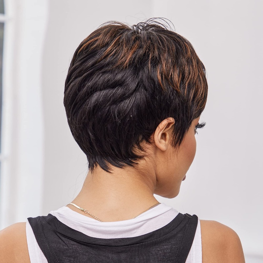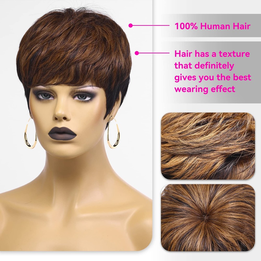 Material: Made of 100% human hair< Br>- Color: As shown in the picture - Hair style: Long hair - Brand: HAIRCUBE - Package includes: 1 wig, 1 wig cap, - You can curl or straighten the wig to change its appearance. A hairdresser can cut or trim the entire wig. - wig color: as shown in the picture - wig style: don't let style limit your beauty, try it boldly, and I will bear the cost of trial and error for you (30 days no reason to return or exchange) Hair Material: This Pixie cut is made of 100% human hair, soft, comfortable, and easy to take care of. Hair style: Short hair is neat and generous, refreshing and not stuffy, and avoids the disadvantage of long hair being prone to knots. Short, fluffy hair with layered textures can better enhance your face shape. Wig color: 1B mixed with brown, calm and nurturing Hair cap: 21.5 to 23.5 inches, adjustable elastic band, suitable for most people's head circumference size. Lace mesh is breathable and comfortable, not stuffy. Perfect Service:If you have any questions about this wig, please feel relaxed to contact us to help you solve the problem. Don't feel that it is troublesome.We welcome your questions and are happy to help you. Your questions are the motivation for us to do better. Thank you!