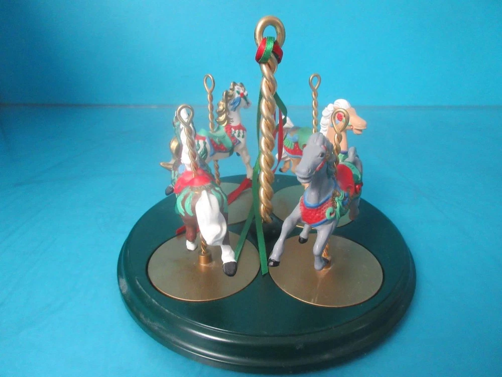 THIS IS IN GREAT CONDITION!!! Please look at the pictures for exact cosmetic condition. We offer no-questions-asked 30 day returns. HALLMARK 1989 CAROUSEL COMPLETE SET + DISPLAY STAND & FOUR HORSES ORNAMENTS STAR HALLMARK 1989 CAROUSEL COMPLETE SET + DISPLAY STAND & FOUR HORSES ORNAMENTS STAR Click images to enlarge Description Thank you for choosing us We have over 15 years of experience selling on Ebay. If you have any questions, please ask any questions through Ebay Messages All of our items are inspected and described through pictures to accurately depict the condition. Exactly what is pictured is included. ALL ITEMS COME WITH A NO-QUESTIONS-ASKED 30 DAY WARRANTY. Item Condition: THIS IS IN GREAT CONDITION!!! Please examine pictures for the cosmetic condition. Payment We accept many forms of payment. Please send a message with any questions. Shipping We do our best to ensure the safety of your purchased item. We do this by using only the best packing materials. We will ship your item within 1 business day after your item is paid for. Our primary carriers are USPS and FEDEX. We ship all of our items worldwide. We use the United States Postal Office as our primary carrier for international items. Please contact us through EBAY MESSAGES to get a quote. For Freight Shipping: All items with shipping over $100 are considered freight items . The listed price is going to a business address. Schools, residences, churches and simliar places don't count as a business as freight companies define them. In order to set up the freight shipment as quickly as possible please provide us with a business name, address, phone number and whether you have access to a loading dock or forklift to remove the skid from the delivery truck. If you will need the assistance of a lift gate truck to lower the item to the ground let us know. That is an additional charge. If you require the item shipped to a residence, it will be much more expensive. Thank you. Terms of Sale The below message applies ONLY to food items It is a part of a template. It appears on all of our listing, but It only applies to a small amount of items we have for sale. "The sale of this item MAY be subject to regulation by the U.S. Food and Drug Administration and state and local regulatory agencies. Please purchase this item if you are an authorized purchaser. If the item is subject to FDA regulation, I will verify your status as an authorized purchaser of this item before shipping the item." About Us We are located in Des Moines, Iowa and we have been selling on Ebay for over 20 years. Most of our items come direct from Universities and various Government agencies. These are trusted sources that we have worked with for many years. We carefully test and examine each item before listing it on Ebay. We pride ourselves in selling quality items with excellent customer service. This is reflected by our Ebay feedback score of 99.6% We ship all over the world. We appreciate your business. If you have any questions, please message us!! Contact Us We are located in Des Moines, Iowa. Feel free to contact us through Ebay messages. Pictures sell! Auctiva offers Free Image Hosting and Editing. 300+ Listing Templates! Auctiva gets you noticed! The complete eBay Selling Solution.