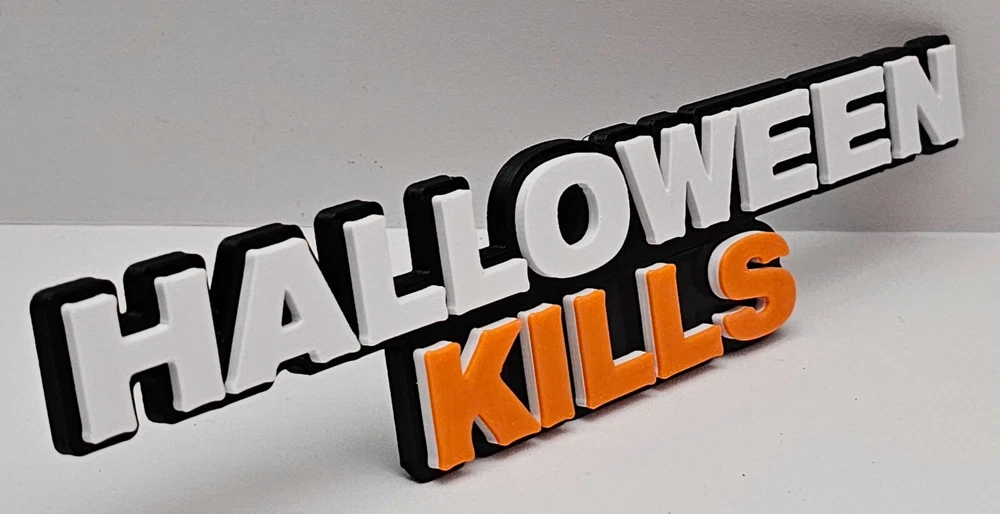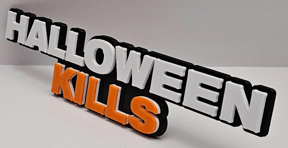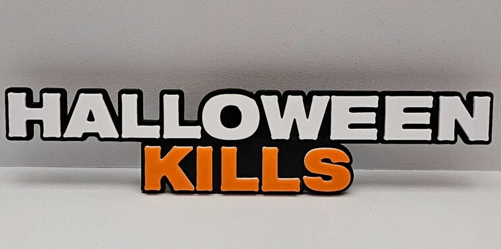 HALLOWEEN KILLS v2 Sign My signs have a peg that goes in the back and gives a little tilt back to the sign making it better to read. I make my signs with high quality PLA plastic. They are printed with multiple brilliant colors so there is no paint that will chip of fade over time. If you would like to have a sign in custom colors please let me know and I can make it the way you'd like. If there is a sign that you would like to have but don't find it our selection please let me know and I will get it designed and made for you. I take a lot of pride in what I do and strive to put out the best quality that I can. However with the nature of the process there may be small imperfections that get by my eye. Such as lines, tiny holes, and the possibility of slight color bleed. Colors may slightly differ for multiple reasons such as the difference in your screens colors vs. mine, the lighting in the picture, and the availability of materials. ((((((( MASKS AND OR PROPS IN PICTURES ARE NOT INCLUDED ))))))) Measurements of each size: 4" Sign is - 4" wide x 7/8" height 6" Sign is - 6" wide x 1 3/8" height 8" Sign is - 8" wide x 1 3/4" height 10" Sign is - 10" wide x 2 3/16" height 12" Sign is - 12" wide x 2 5/8" height