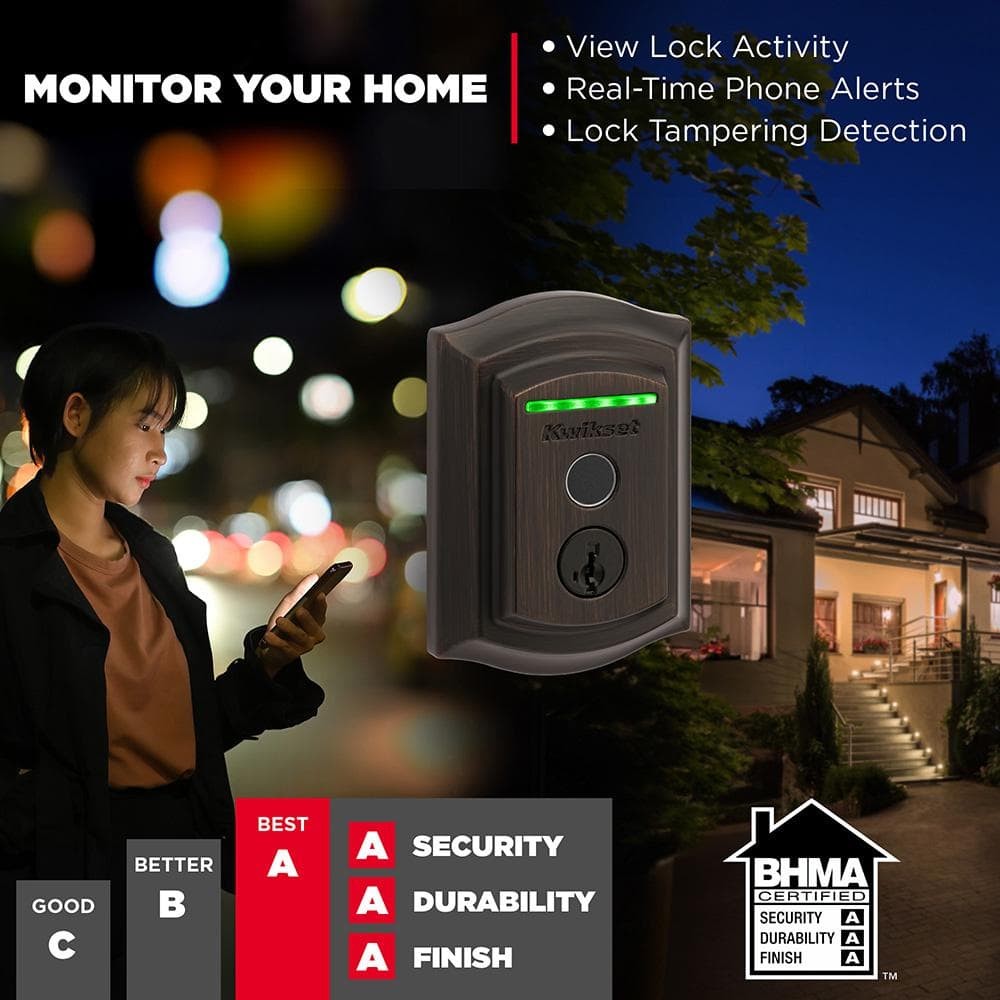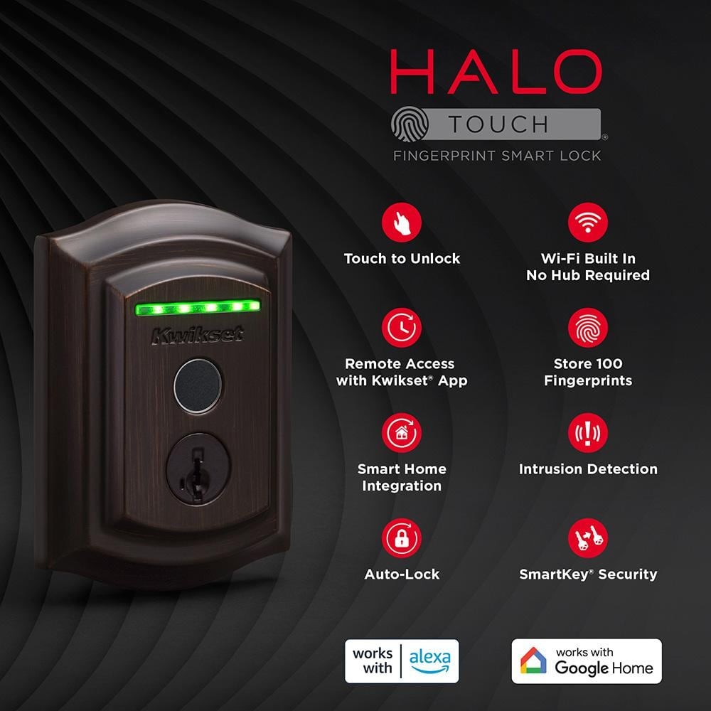 HALO Touch Venetian Bronze Traditional Fingerprint WiFi Electronic Smart Lock Deadbolt Featuring SmartKey Security Electronic Deadbolts Control anywhere with app or with Alexa and Google Home Control through home integrated Wifi; No smart home hub required Patented SmartKey technology allows you to rekey lock in seconds The Halo Touch fingerprint smart lock allows you to simply use your unique fingerprint to lock and unlock your door. Halo Touch has Wi-Fi built-in that connects directly to your home Wi-Fi network and smartphone for a secure smart home that does not require a third party smart home hub, panel or subscription. With up to 100 fingerprints (50 users), you can give access to your family and friends with their unique fingerprint and manage a... Urintelligentbi Hello, respected customer HALO Touch Venetian Bronze Traditional Fingerprint WiFi Electronic Smart Lock HALO Touch Venetian Bronze Traditional Fingerprint WiFi Electronic Smart Lock Deadbolt Featuring SmartKey Security Electronic Deadbolts Control anywhere with app or with Alexa and Google Home Control through home integrated Wifi; No smart home hub required Patented SmartKey technology allows you to rekey lock in seconds The Halo Touch fingerprint smart lock allows you to simply use your unique fingerprint to lock and unlock your door. Halo Touch has Wi-Fi built-in that connects directly to your home Wi-Fi network and smartphone for a secure smart home that does not require a third party smart home hub, panel or subscription. With up to 100 fingerprints (50 users), you can give access to your family and friends with their unique fingerprint and manage access through the Kwikset app. You can also lock and check the status of Halo using voice commands with Amazon Alexa and Google Assistant. This single cylinder deadbolt can be locked or unlocked by using the keypad or key from the outside as well as the turn button from the inside. The Venetian Bronze finish is hand-rubbed to reveal unique bronze highlights and provides a rich and warm complement to the product's style. Touch to unlock: Unlock your door with your fingerprint for secure, convenient entry andwithout having to take out your keys. Control and monitor from anywhere: Remotely lock and unlock, share guest access, view activity history and more in the Kwikset app. No hub required. Multiple ways to unlock: Unlock your door with your fingerprint, use the Kwikset mobile app or use the provided physical key. Easy, secure guest access: add up to 100 fingerprints (50 users) to share access with friends and family, fingerprints are stored securely on the lock Voice Assistant Compatibility: Works with Amazon Alexa or Google Home. Control your smart lock with your voice when your hands are full or you're in a hurry. Smart Home Automations: Create automations for added convenience and security. Let Amazon Alexa or Google Home lock your door each night or welcome you home by turning on the lights when you unlock the door. Intrusion detection: receive real-time phone alerts if invalid entry attempts or lock tampering occurs Auto Lock: Enjoy security and peace of mind knowing your door can lock itself. Set aduration in the Kwikset app for your door to automatically lock after entry orexit - perfect for keeping your hands free. SmartKey Security: Protects against advanced break-in techniques and allows you to re-key your lock yourself in seconds. Re-key all your locks to one Kwikset key for one-keyconvenience. Easy Install: Installs in minutes with just a screwdriver and fits doors 1-3/8" to 1-3/4" thick.Includes an adjustable backset for door compatibility and a tapered latch tocompensate for improper door alignment caused by structural settling orwarping. Certified Quality: Security, Durability and Finish are AAA BHMA certified, designed for thehighest level of security and the toughest environments with frequent use. Why Kwikset: For tech-savvy and security-conscious consumers seeking seamless integration of advanced technology into their homes, the Kwikset Electronic Seriesmerges smart convenience with modern design to deliver cutting-edgesolutions that elevate living spaces. Click here to shop all Kwikset products For any questions regarding your purchase, product, or replacement parts please call1-800-HOME-DEPOT(1-800-466-3337) for customer support Click here for more information on Electronic Recycling Programs Item Specifics Brand Kwikset Type Wall Mounted Fans length width height weight 3.759 lb Payment [ 1. We accept Paypal. Each buyer's payments is protected by Ebay. 2. Payment time affects delivery time. 3. If you want more quantities or other models , please contact us! ] Shipping [ 1.Processing time It normally takes 3 business days. We will confirm in time after receiving the payment from the buyer, verify the address of buyer then deliver the item according to the buyer's order time. 2.Shipping time We ship to eBay's address only,please ensure your address in eBay. We ship to all parts of the world, but we are sorry that we do not support the Russian Federation and Ukraine for the time being. There may be some delay due to flight, National holiday, weather, local natural disaster impact, etc, hope you can be patient and contact us freely, we will try our best to help you. ] Returns [ 1. We gu arantee to provide you with a five-star shopping experience, and provide return& refund services for buyers. If you are not satisfied when you receive the items, please contact us within 30 days for return and refund. (Buyer pays return shipping) 2. Please don't open case via ebay or paypal. 3. For order questions please contact us via the Ebay Message System. We are willing to answer your questions and we will provide you the best soloution within 24 hours. Please understand that we are not in the office on Saturday and Sunday, so the questions asked over the weekend will be answered on the following Monday. 4. We sincerely invite you to leave a fair feedback after comple