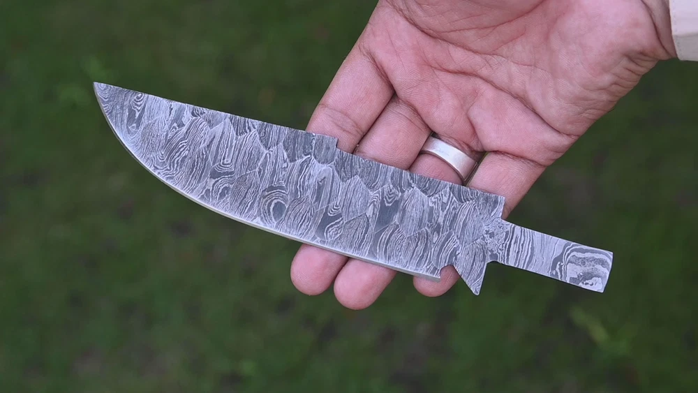 HAND FORGED DAMASCUS STEEL BLANK BLADE FOR SKINNING HUNTING KNIFE This superb design Blank Blade is hand forged. Blade of this knife has a nice file work and is made of 512 layers of 4340 stainless steel and 1075 high carbon steel and hardness 55-58 HRC . This robust Blank Blade is lab tested under intense conditions, the balance and shape of this Blank Blade ensures perfect grip. Overall Length: 8" Inches Damascus Design: Twist Pattern Layers: 512 Hardness: 55-58 HRC Warning: Keep fingers clear of blades Store away from children.