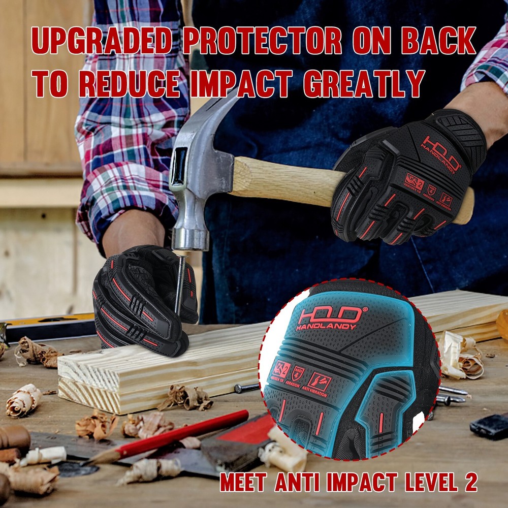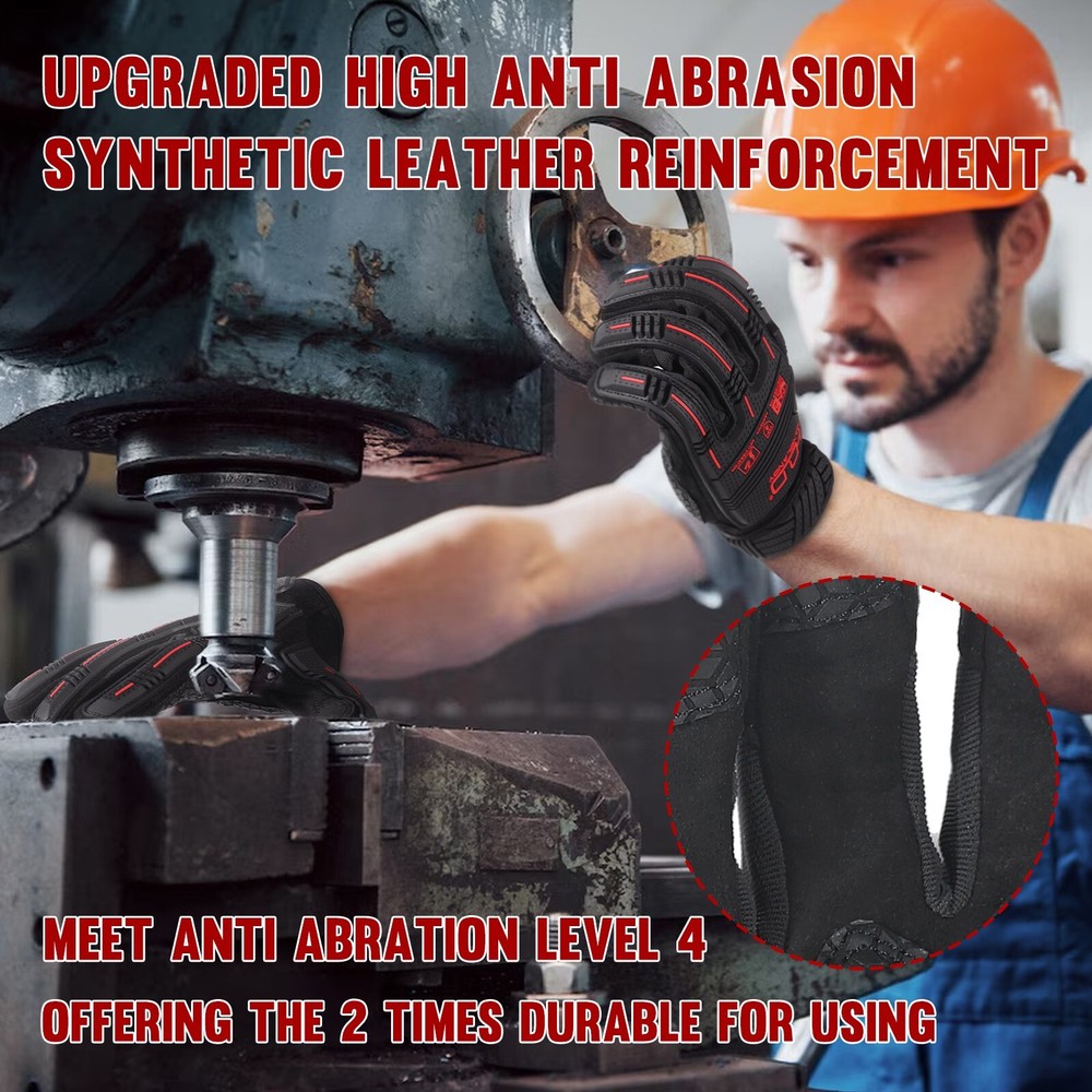 SBR Palm for Effective Anti-Vibration:5mm SBR on the palm provides excellent anti-vibration properties, These anti vibration gloves effectively cut down on the vibrations caused by tools like a random orbit sander and chainsaw, providing relief for workers with nerve damage aggravated by extended tool use. TPR Back for Enhanced Impact Protection: Thermoplastic Rubber (TPR) on the back of the gloves offers superior impact protection, impact-reducing gloves safeguarding your hands from potential impacts or crushing hazards. Enhanced Grip for Safety Work: Improved GRIP NEO palm and fingertips deliver superior grip and wear resistance, ensuring precise handling of tools and equipment. Flexibility for Unrestricted Movement: Designed with flexibility in mind, these heavy duty work gloves allow for natural hand movements, ensuring dexterity and comfortable while working. Touch Screen Compatible: Touch screen work gloves are capable of your phone or tablet without having to take the gloves off.