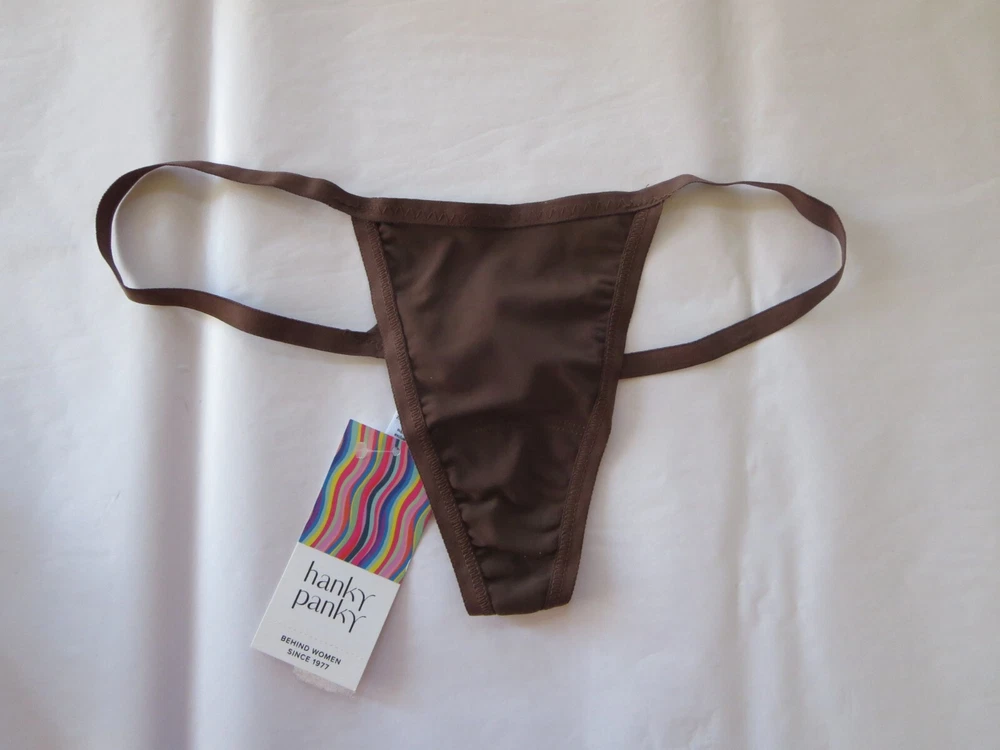 HANKY PANKY PANTY NEW WITH TAG SIZE: ONE SIZE COLOR: MAHOGANY / BROWN . AS SHOWN ACTUAL ITEM AS SHOWN EXCEPT BLACK ON MODEL. FROM SMOKE FREE HOME HANKY PANKY WOMEN'S G-STRING THONG PANTY MSRP $20 Low rise G-string has breathable microfiber at front and triangle panel at upper back. Made of nylon and Lycra spandex with Supima cotton crotch liner. Elastic waistband provides a secure fit. Front and back triangle panels are breathable microfiber knit for comfort. Interior tag gives fabric/care needs. Low rise styling. Seamless rear. Minimal rear coverage. Supima cotton crotch liner. One size