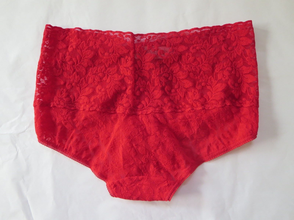 HANKY PANKY PANTY NEW WITH TAG STYLE #9K2124 SIZE: SMALL COLOR: RED --- AS SHOWN ACTUAL ITEM AS SHOWN EXCEPT VIOLET ON MODEL. ON MODEL FOR FITTING REFERENCE ONLY. FROM SMOKE FREE HOME HANKY PANKY WOMEN SIGNATURE LACE RETRO V-KINI PANTY MSRP $39 NO RETURN ON PANTY PLEASE Get the flattering look of a Hanky Panky thong and the full coverage of a traditional bikini with this panty. Retro styled with a high waist for a flattering fit. Made of nylon/spandex. Stretch lace waistband with scalloped edges lies flat and won't dig in. Elastic along leg openings for custom fit. High rise. Seamless sides for a smooth fit. Full rear coverage. Made in the USA. Sewn-in cotton crotch liner for added comfort. Please Note: Model is wearing thong for modesty.