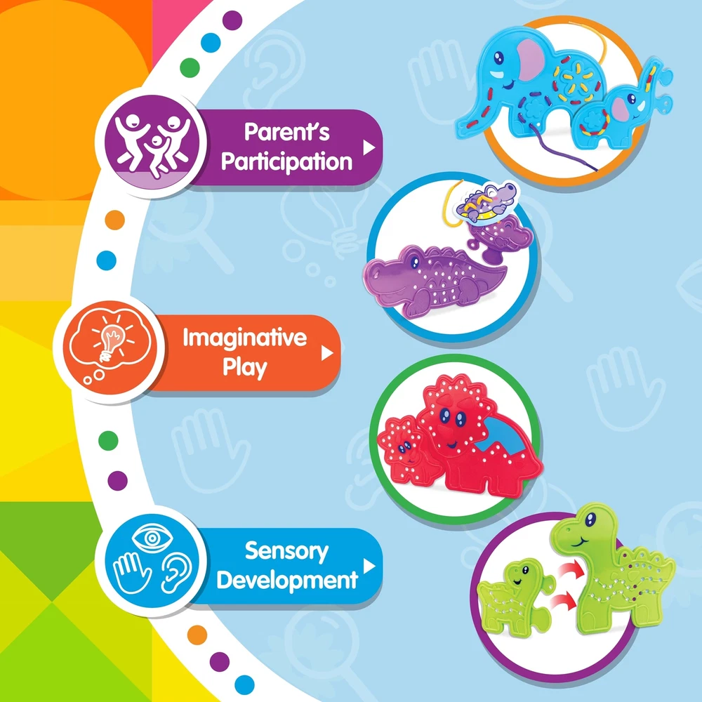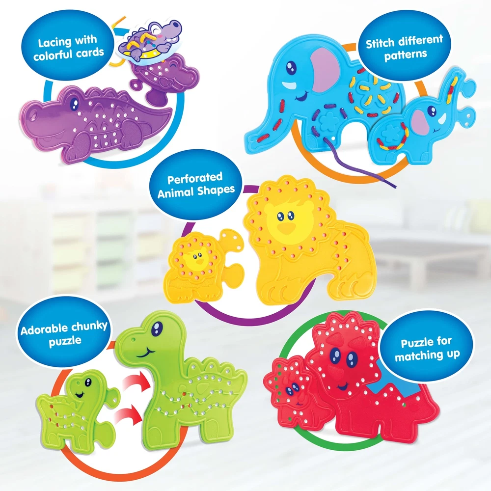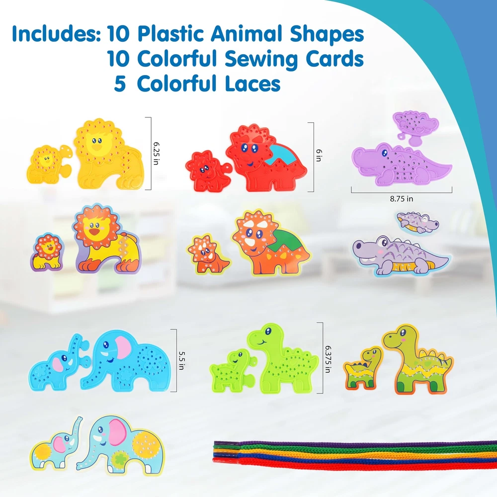 HAP-P-KID Montessori 20 Pieces Animal Puzzle Lacing Toys, Educational Learning Sewing Activity Threading with Laces, Educational Gifts for 3 4 5 6 Year Old Boys Girls Kids Toddler Preschool This lacing activity set comes with 10 pieces adorable animal puzzle boards, 10 colorful animal cards, and 5 colorful laces. It encourages kids to practice their fine motor skills and hand-eye coordination ability in lacing, over and over again. By lacing different way of color laces and patterns can provide endless combination and hours of fun for kids. 【ANIMALS LACING】The Animal Lacing toy set includes 10 plastic animal lacing boards, 10 colorful animal cards and 5 colorful laces. Animals include Lions, Elephants, Crocodiles, Triceratops, and Brachiosaurs. These shaped threading toys help to develop kid's imagination, hand-eye coordination, and fine motor skills. 【DEVELOPMENTAL BENEFITS】 Boost sensory development. Improve fine motor skills and hand-eye coordination ability. Encourage creativity, imagination and self-expression. Let the children give full play to their imagination. 【LEARNING VALUES】 By matching the small animal with its parent puzzle together, kids realize color and shape matching. In addition, placing corresponding colorful cards on top of the plastic animal boards introducing another way of creativity. A great introduction before sewing and other crafting skills. 【TODDLER TRAVEL TOYS】These travel toys are perfect for kids airplane or road trip activities and even restaurants. Children focus on playing with threading toys to eliminate boredom and irritability from traveling. 【SAFE & NON-TOXIC】Compliance with toy safety standards. Made from child safe and durable materials. Pieces are smooth surface and no sharp edges. Perfect size for small hands to hold and play. Shipping from the USA All of our products are shipped from the USA, ensuring quick delivery to your destination. Payment We offer the following payment methods: PayPal, credit card, bank transfer, and eBay's secure payment system. Free Shipping & Free Returns Shipping within the USA is FREE. Additionally, any return is absolutely free for you. Risk-Free Purchase You have the option to return an item within 30 days without any justification. We cover the return shipping costs! Fast Shipping We ship immediately upon receipt of payment. Generally, the package is delivered within 2-3 days in the USA. If it takes longer, we will contact you. Quality and Costs Made in Europe, USA, China No customs fees or additional charges Total satisfaction guarantee Invoice with declared VAT available upon request in .pdf format Feedback Your feedback is very important to us. After you pay for your purchase, you will automatically receive positive feedback from us.