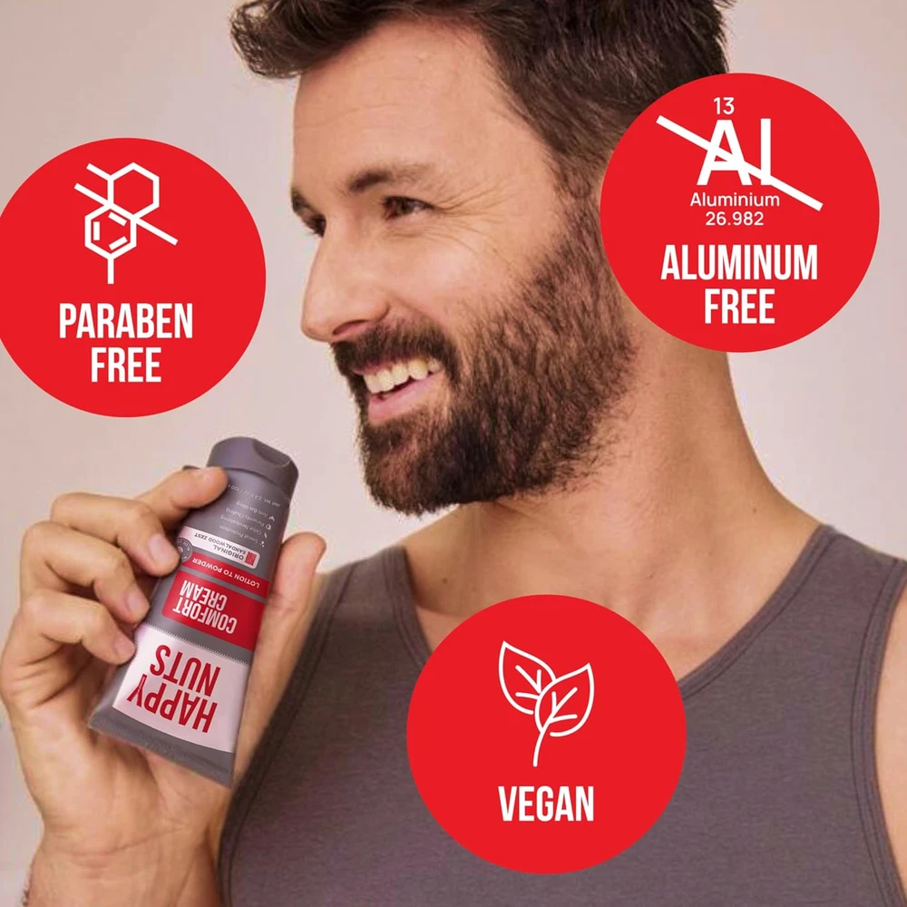 HAPPY NUTS Comfort Cream Deodorant for Men: Anti-Chafing Sweat Defense, Odor Con
