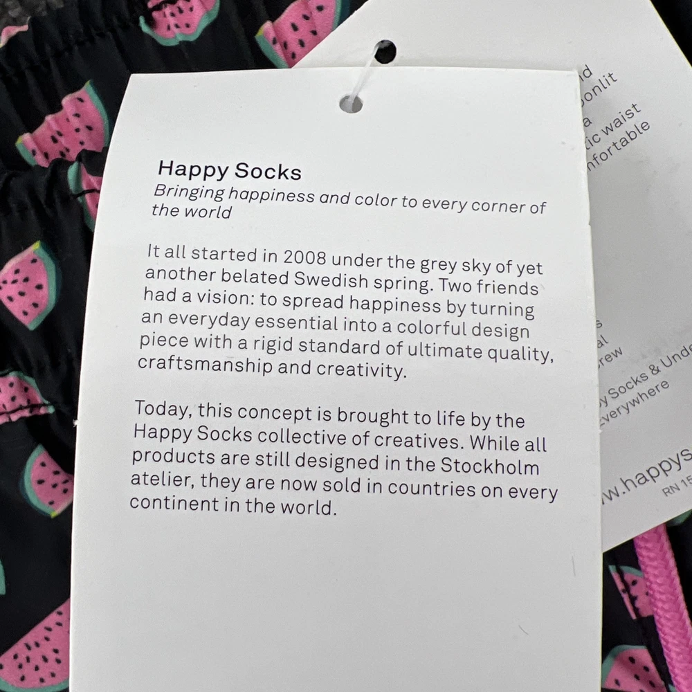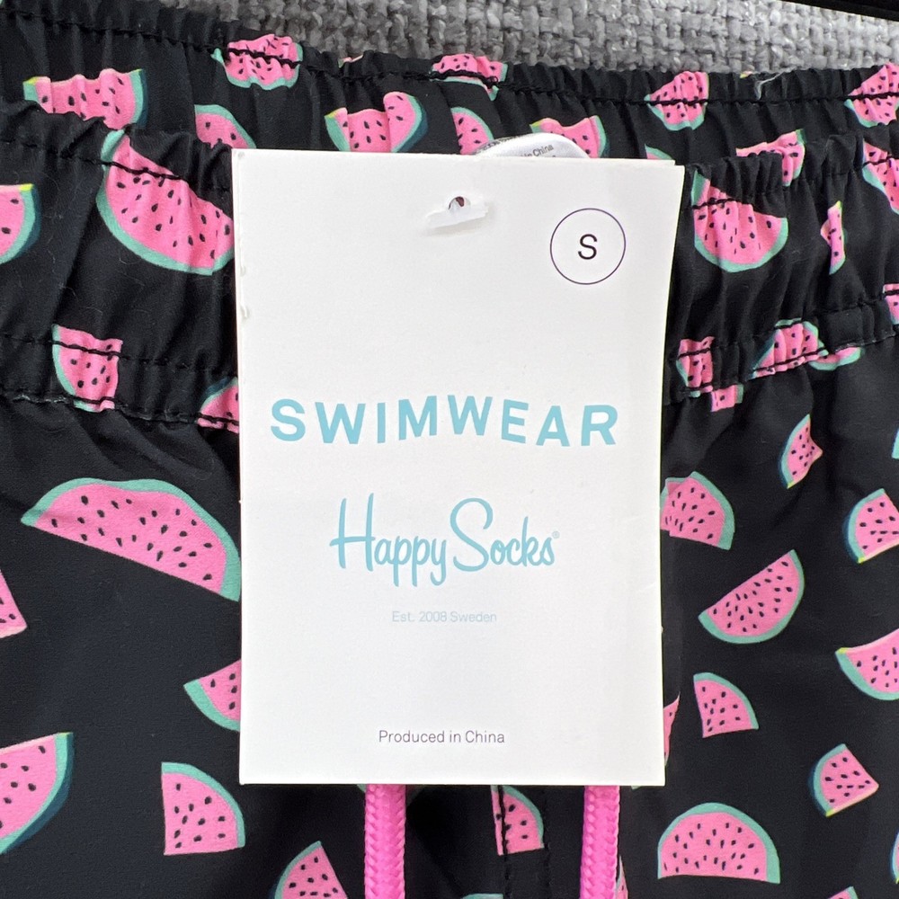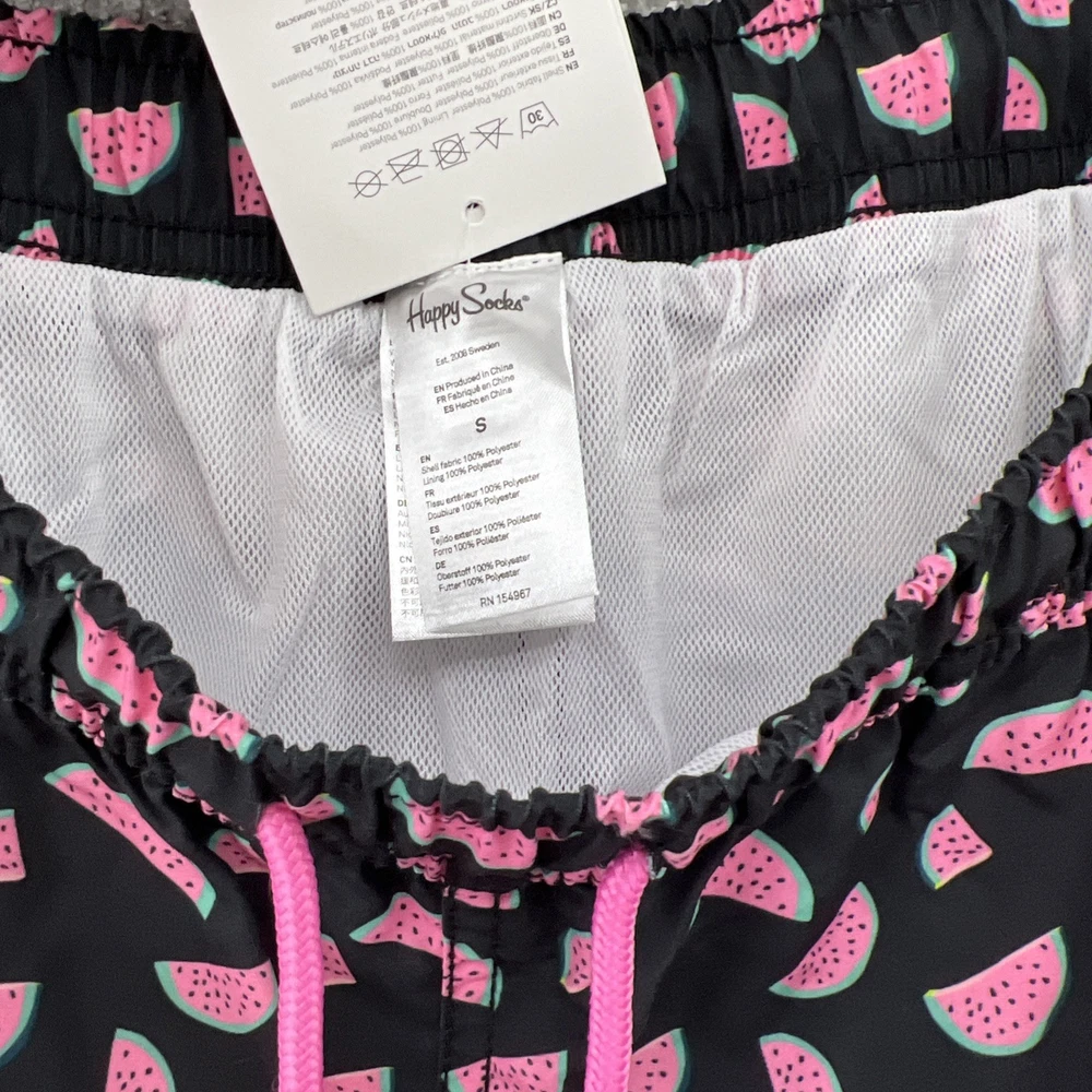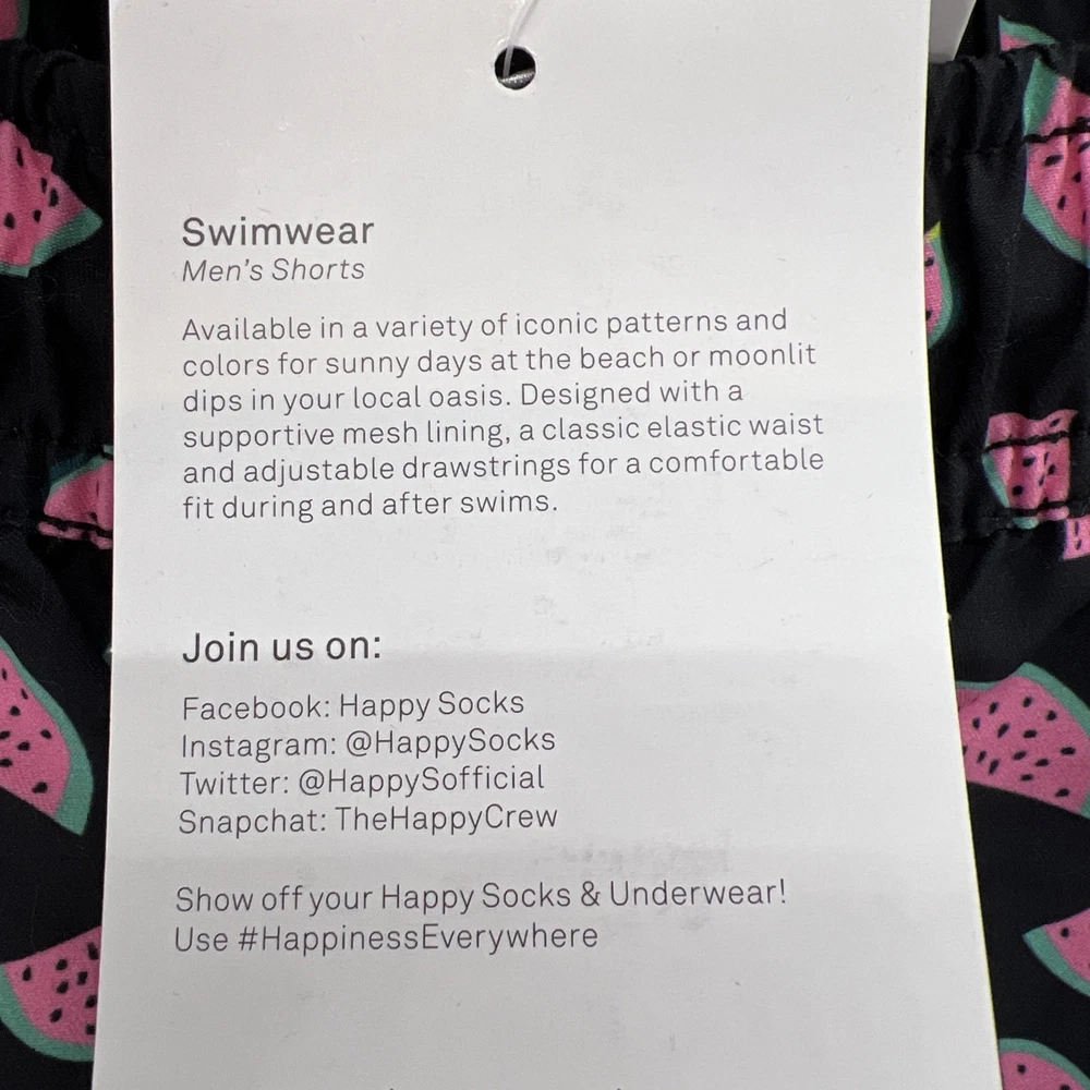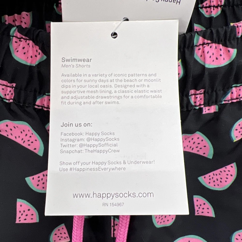 HAPPY SOCKS Men's Small Black Watermelon Mesh Lining Swimming Shorts Pocket New With Tags Mesh lining with mesh pockets Drawstring Elastic Waist 27 inch waist 4.5 in Inseam See Pictures for Details and Measurements No Returns