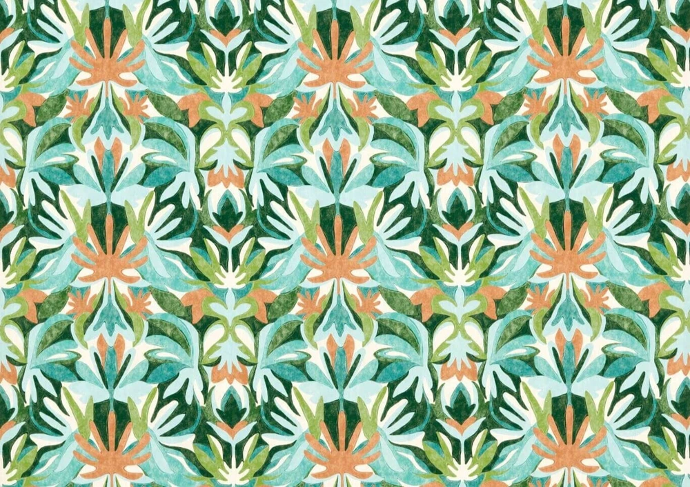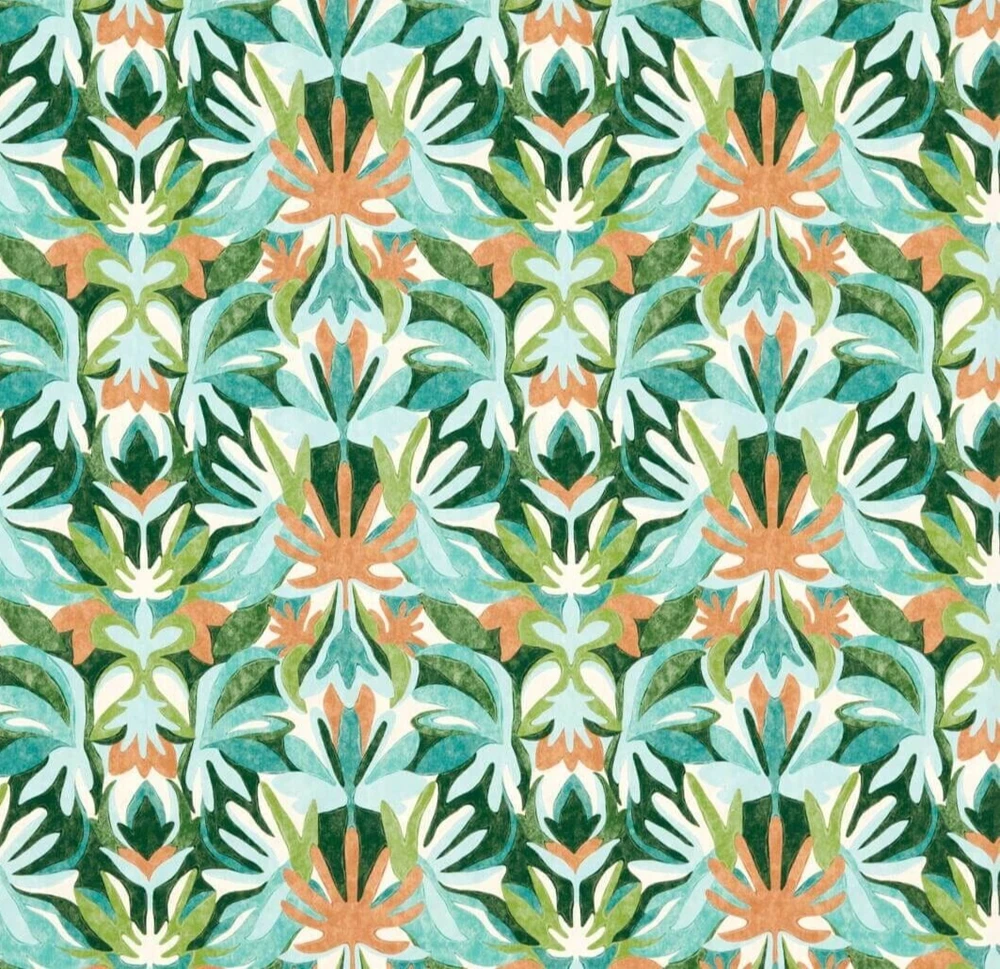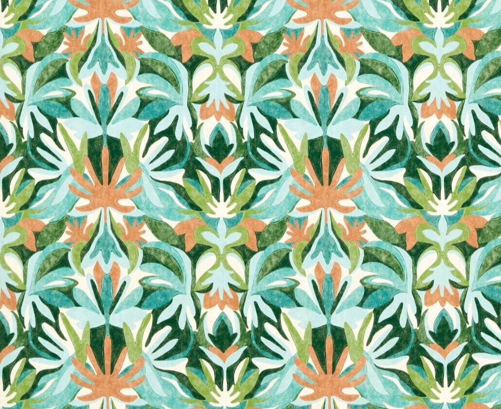 HARLEQUIN FABRIC FROM THE OUTDOOR FABRIC COLLECTION DESIGN IS CALLED MELORA FIG LEAF/PAPRIKA/AZUL COLOURWAY PATTERN REPEAT 38.6 cm YOU ARE BUYING A PIECE OF FABRIC APPROXIMATELY 2.3 METRES IN LENGTH 1.38.2 METRES WIDE. 100% POLYESTER SUITABLE FOR CURTAINS,BLINDS OR CUSHION COVERS PLEASE NOTE THAT THE MAJORITY OF MY FABRICS WILL COME FOLDED