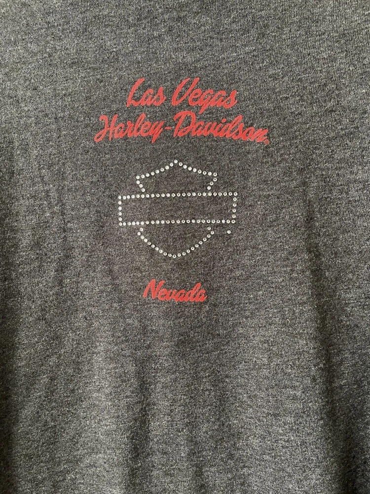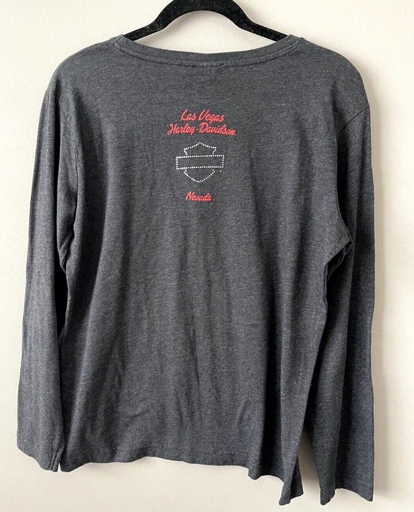 Harley Davison Las Vegas Woman's Shirt Size: Lg Condition: Excellent Measurements: 22" Arm pit to Arm Pit 24.5" Length from center back neckline to bottom of hem We work hard to source items that are either new or look like new. We ship within 3 days, usually sooner. Items are stored in a smoke-free, pet-free home. If you have questions, feel free to contact us through Ebay. Thank you for shopping with us! Have a great day!! Please note measurements are approximate and given as a courtesy. Check out the other items we have listed on Ebay: thankfulthrifter