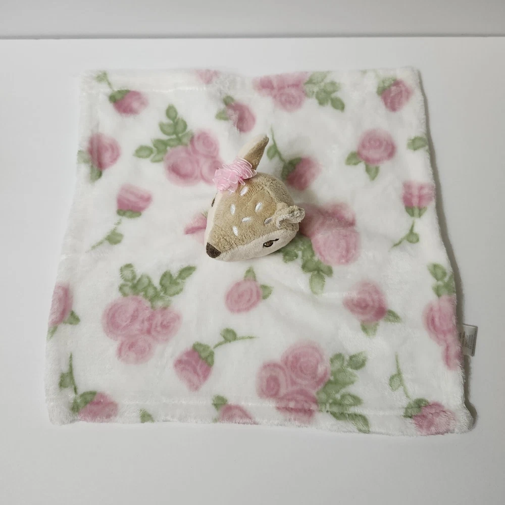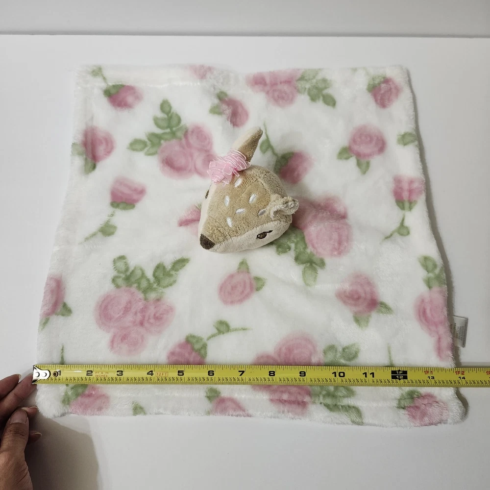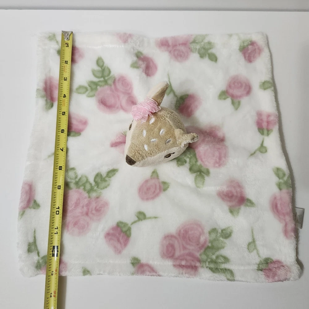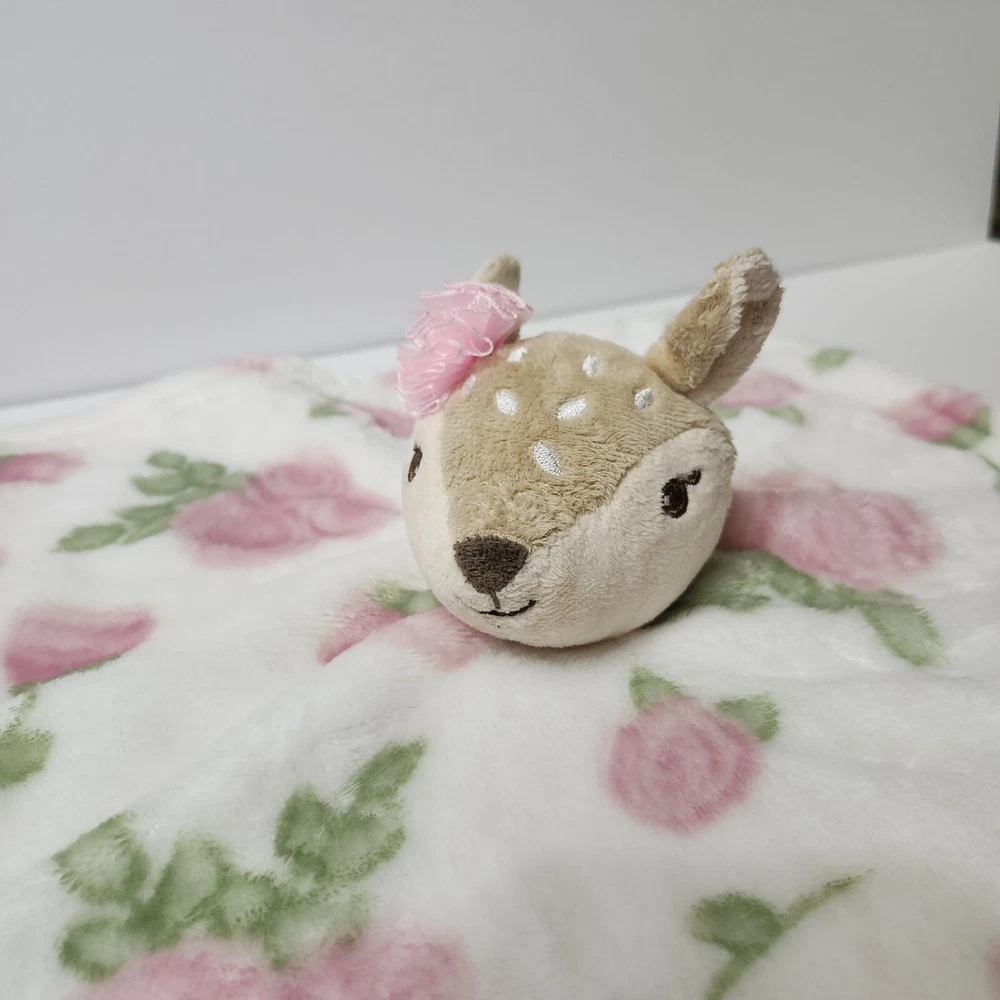HB Hudson Baby FAWN Deer SECURITY BLANKET White Pink Roses Soft Plush LOVEY