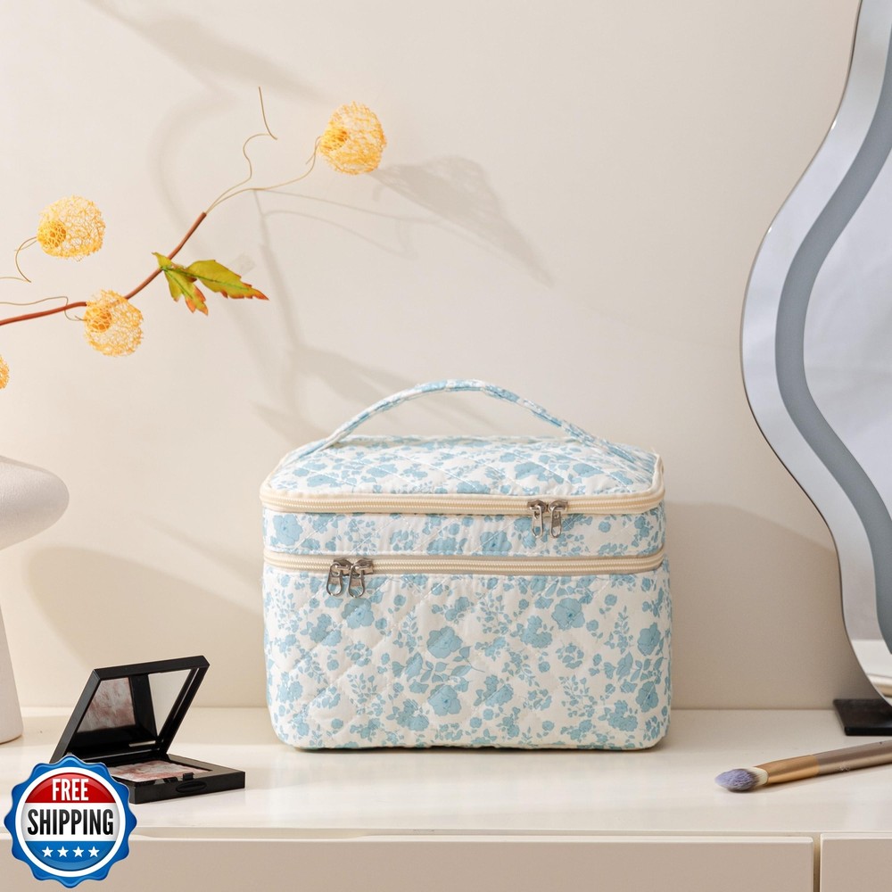 HBselect Quilted Makeup Bag, Portable Cotton Large Travel Makeup Bag, Cute Coquette Blueflowers Floral Cosmetic Bags Toiletry Bags for Women Teen Girls Mom Features SOFT COTTON MATERIAL - The quilted cotton makeup bag is made of high-quality cotton, reliable and stable, which is lightweight and good in texture, soft and durable. The zipper is smooth to use, which looks pretty, and opens, and closes the makeup travel bag smoothly and easily. LARGE CAPACITY - Makeup bag Size: 10.1 x 5.9 x 5.3 inches, Portable and large capacity. The travel makeup bag can hold your lipstick, cosmetic accessories, lipstick, lip gloss, brushes, skincare products, toiletries, 3c items, stationery kit, watercolor pens pencils, painting brushes, makeup tools, toiletries, or travel essentials and can be easily folded up and placed in a handbag or suitcase when not in use QUILTED DESIGN - This cute floral cosmetic bag features a floral pattern design, is fashionable and skin-friendly, and is comfortable to the touch. The stylish design makes these makeup bags a fashionable accessory, suitable for both your everyday makeup routine and special occasions, allowing you to showcase your personal style MULTI-PURPOSE - HBselect Makeup bag organizer can be used as a daily handbag, cosmetic bag and skincare organizing bag, storage bag, pencil pouch, and toiletry bag. The initial makeup storage bag can be used during travel because it is lightweight and does not take up too much space in the suitcase. PERSONALIZED GIFTS FOR WOMEN - Our makeup bags are cute and individualized and are great gifts for women, such as mothers, wives, daughters, sisters, teachers, and friends. Makeup Bags for women could be the perfect personalized gifts for Birthday Gifts, Mother's Day Gifts, Christmas Gifts, Valentine's Day Gifts, Graduation Gifts, Teachers' Day Gifts, and more. Our Makeup pouch is for women of all ages. Bring back amazing memories when she uses it every time Shipping Free & Fast Shipping: We offer free shipping to most of the USA with a normal delivery time of 3-7 days. However, due to the current situation, additional delivery time (up to 3 weeks) may be required for some items. Alternative Carriers: We may use alternative carriers (e.g., USPS, FedEx, UPS) to ensure your package arrives safely and on time. Due to the use of multiple carriers, we are unable to provide a tracking number automatically. Handling Time: Orders are processed and shipped within 1-2 business days of receiving cleared payment. Shipping Restrictions: Shipping to Alaska, Hawaii, Puerto Rico, Guam, and other US territories may incur shipping charges or delivery restrictions. Please contact us before ordering, or your order can be refunded/cancelled. State Restrictions: Certain items may not be shipped to California due to state regulations. Contact for Tracking Updates: If you require tracking updates or have any concerns about the delivery of your order, please feel free to contact us, and we will be happy to assist you. Return Policy 30-Day Hassle-Free Returns: If you are not completely satisfied with your purchase, you can return the item for free within 30 days of receiving it for a full refund or exchange. Easy Return Process: Contact us, and we will provide you with a prepaid return shipping label and detailed instructions. No Restocking Fee: There are no restocking fees for returns. However, the buyer is responsible for return shipping costs if the return is not due to a seller"s error. Refund Processing: Refunds will be processed within 1 business day of receiving the returned item in its original condition. Feedback Your feedback is extremely important to us. We strive to provide the best products and customer service possible. If you are satisfied with your purchase, please take a moment to leave us a positive review. If you have any concerns or issues with your order, please contact us before leaving negative feedback. We are committed to resolving any problems and ensuring your satisfaction. Contact Us If you have any questions or concerns, please feel free to reach out to our customer support team. You can contact us through the eBay messaging system. We are available Monday to Friday, 9:00 am to 5:00 pm EST, and we will do our best to respond to your inquiry within 24 hours. Thank you for supporting our small family business!